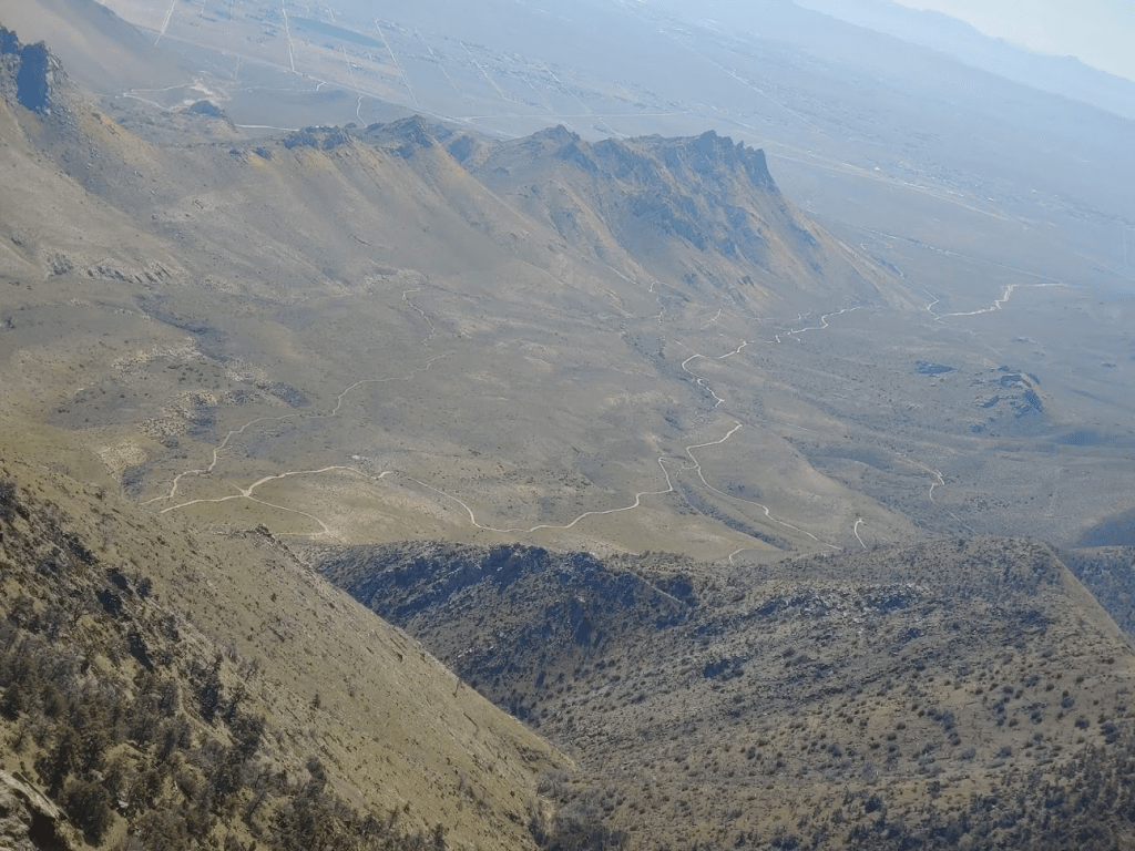 Once back on US-395, I drove south for about 12 miles before turning west (right) onto Indian Wells Canyon Road. The turnoff for this dirt road is right before the Indian Wells Brewing Company, which I’ve heard good things about. I’ll have to come back after the pandemic is over. I drove 8.6 miles up this road until it ends at a small parking area at 5390 feet which serves as the trailhead for Owens Peak. The dirt road is in decent shape. I would recommend high clearance for some rutted sections, but I did see a passenger car at the trailhead the next day. There are many side roads which lead off in different directions, but if you stay on the main road it’s easy to stay on the right course. The road is signed SE 164. I noted one other truck parked at the trailhead, but the area was large enough where I had enough privacy. The views down into the valley I had just driven up were very nice, and I wished I had gotten up there sooner before it got dark. I fell asleep early and had a very good night’s sleep.
