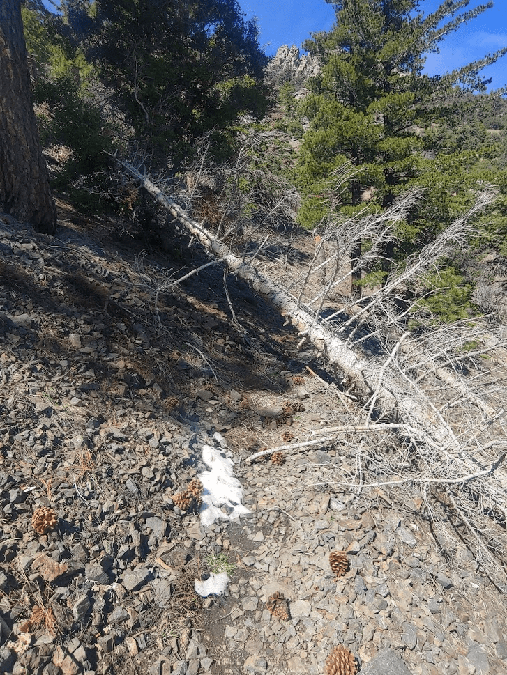 It took me 25 minutes to descend the 1000 feet back to the PCT. I was now 6 miles in. I continued north towards Owens Peak. There were a few downed trees to maneuver around (this would become a theme for the weekend).