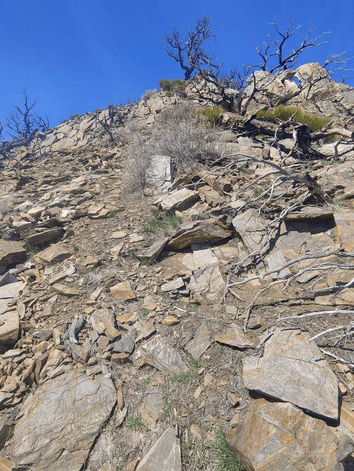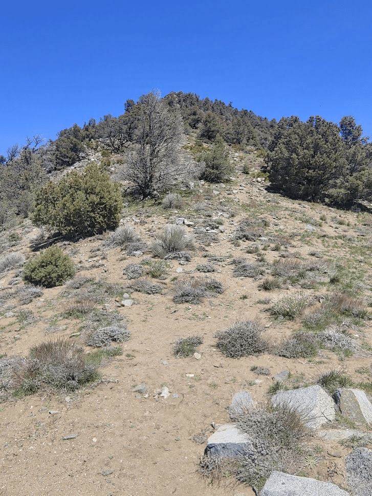 This part was steep, but not too brushy as I made my way up the slope. It was pretty warm, so I really started to sweat during this part.