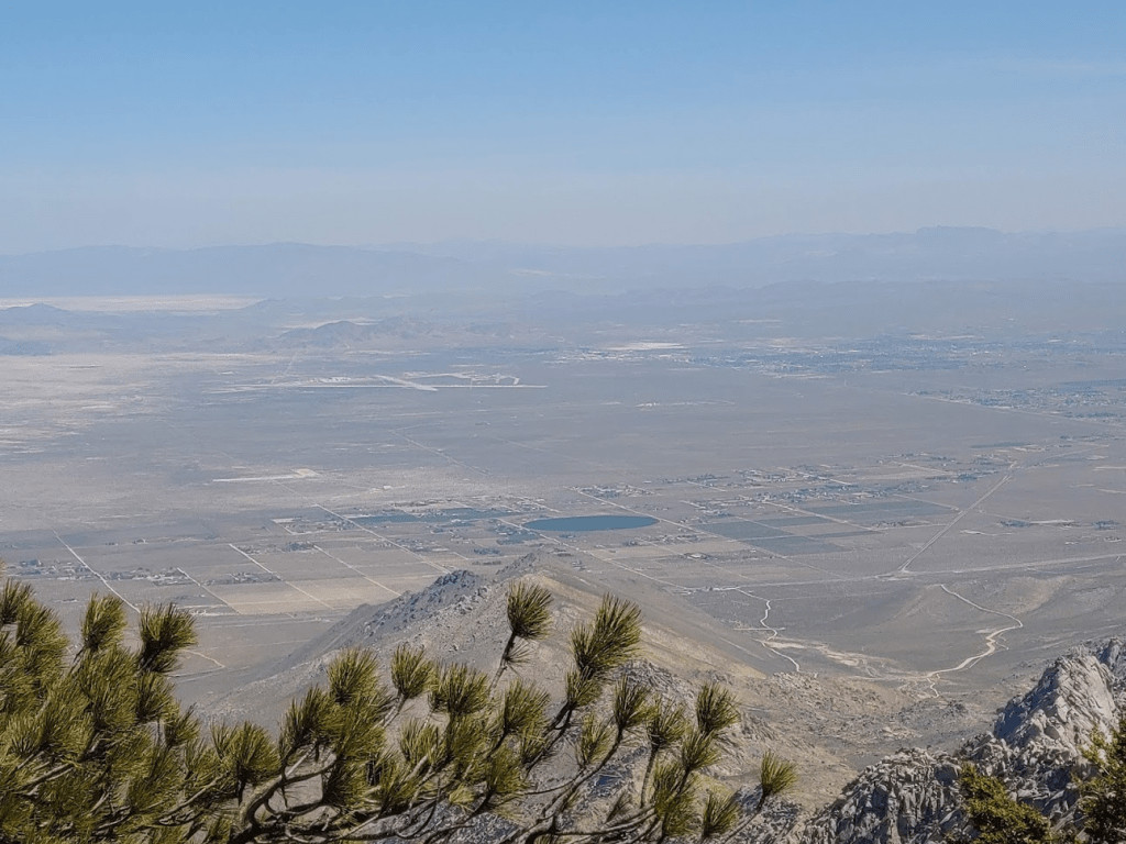 Owens Peak, with over 2000 feet of prominence, is the highest peak in the vicinity so it commands tremendous views. The high Sierra was visible many mile to the north.