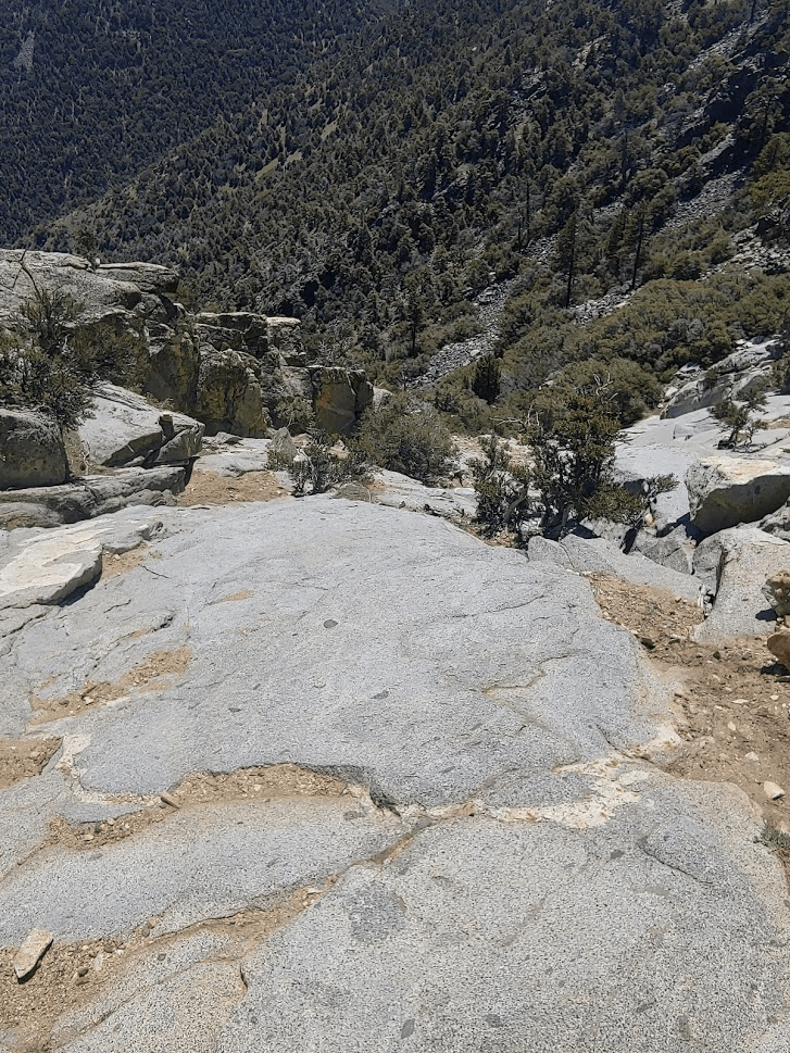After about 0.5 mile, I reached some rocky slabs. I had read reports about this section and made sure to go down carefully. I used my butt to slide down the steepest parts.