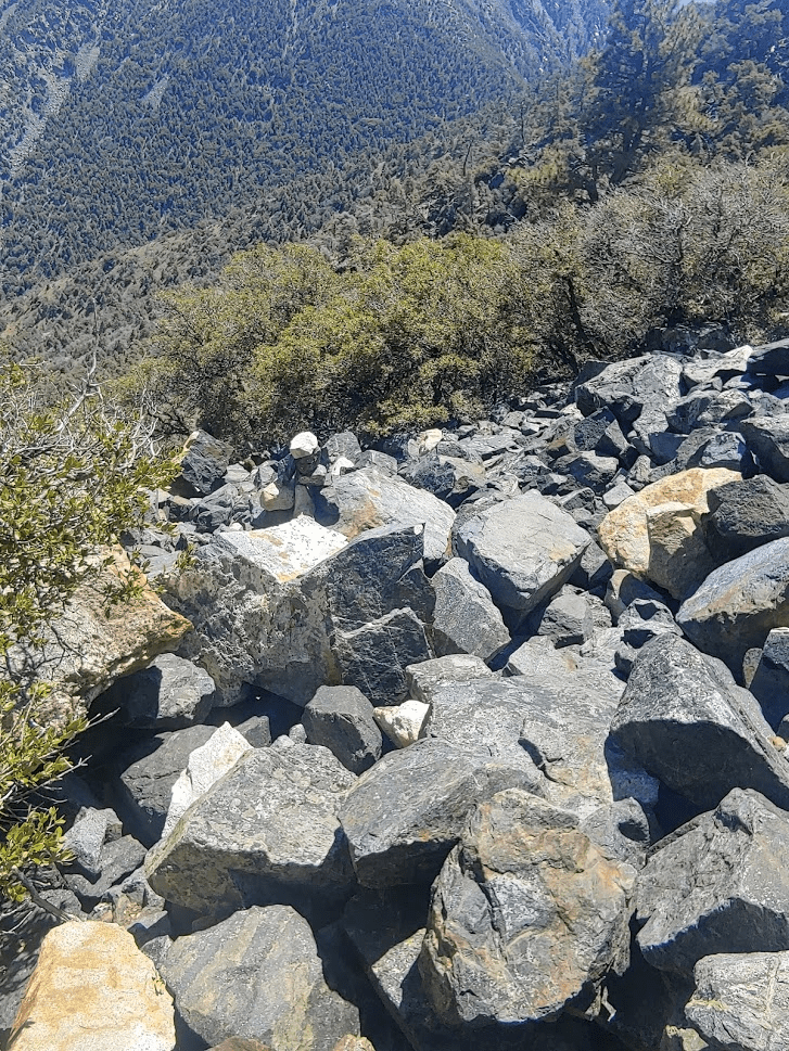 After the slabs I crossed a small talus field. I ran into a group of 4 hikers on their way up around this point.