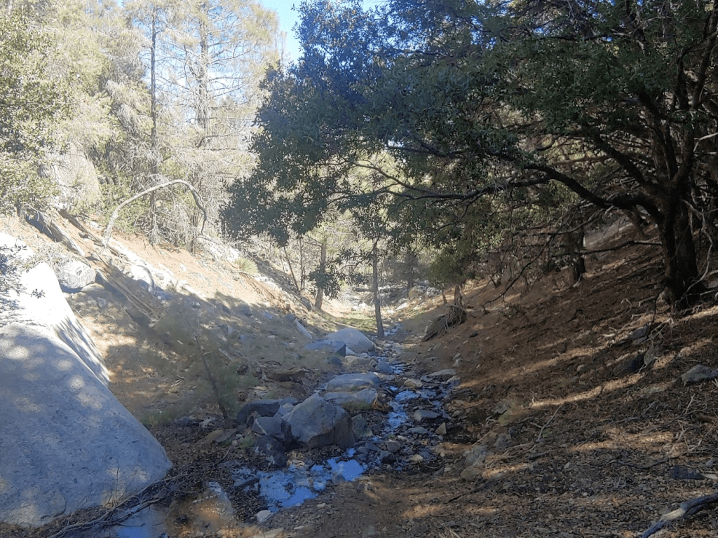 Shortly after this, I ran into a solo hiker on his way up. I thought it seemed late in the day to be making a summit attempt. The trail eventually leaves the creek as it gets near the trailhead.