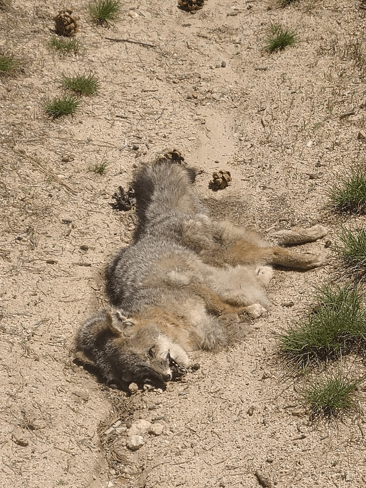 At 2.5 miles I noticed a dead animal in the middle of the trail. At first, I thought it was a coyote, but realized it was too small when I got closer. After seeing its bushy tail, I decided it was a gray fox. Live foxes are almost never seen in the wilderness since they are only active at night.