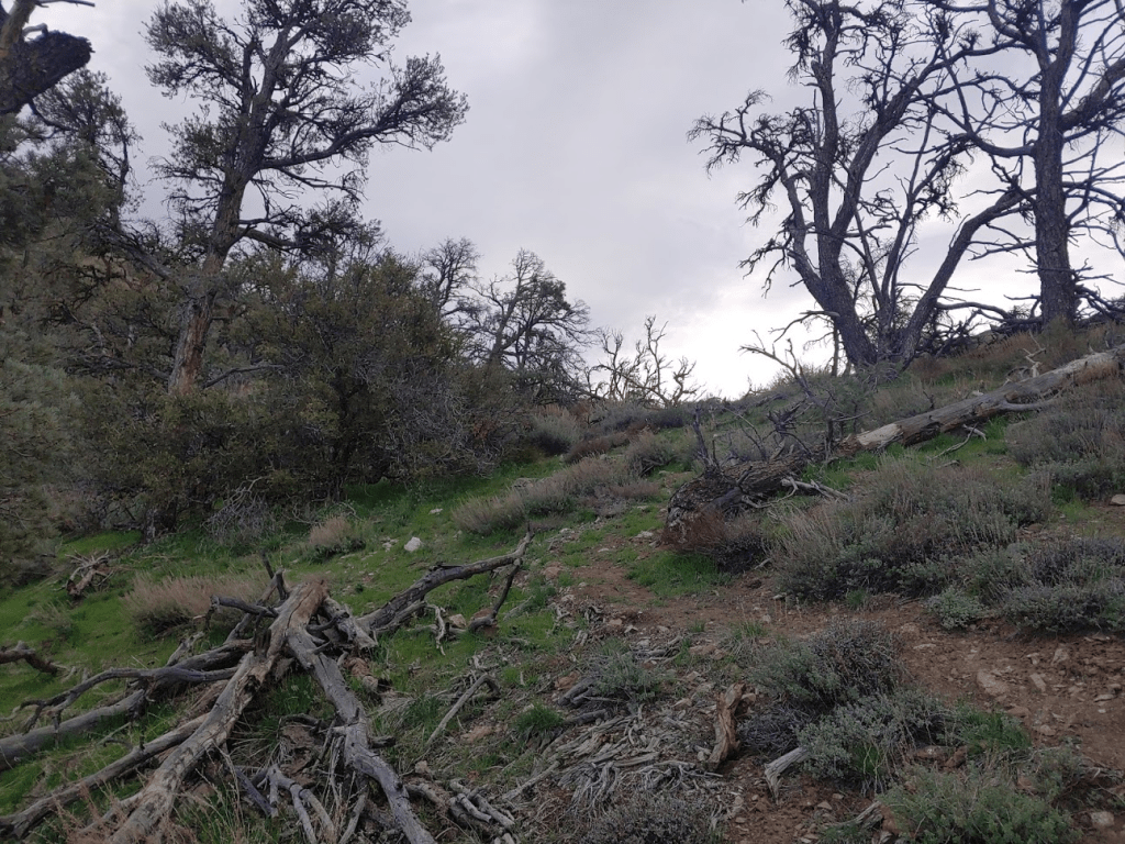 There were a lot of downed trees in the area. I’m not really sure why, since they didn’t appear to be burned. Many of them were fallen on the trail which slowed my progress a little.