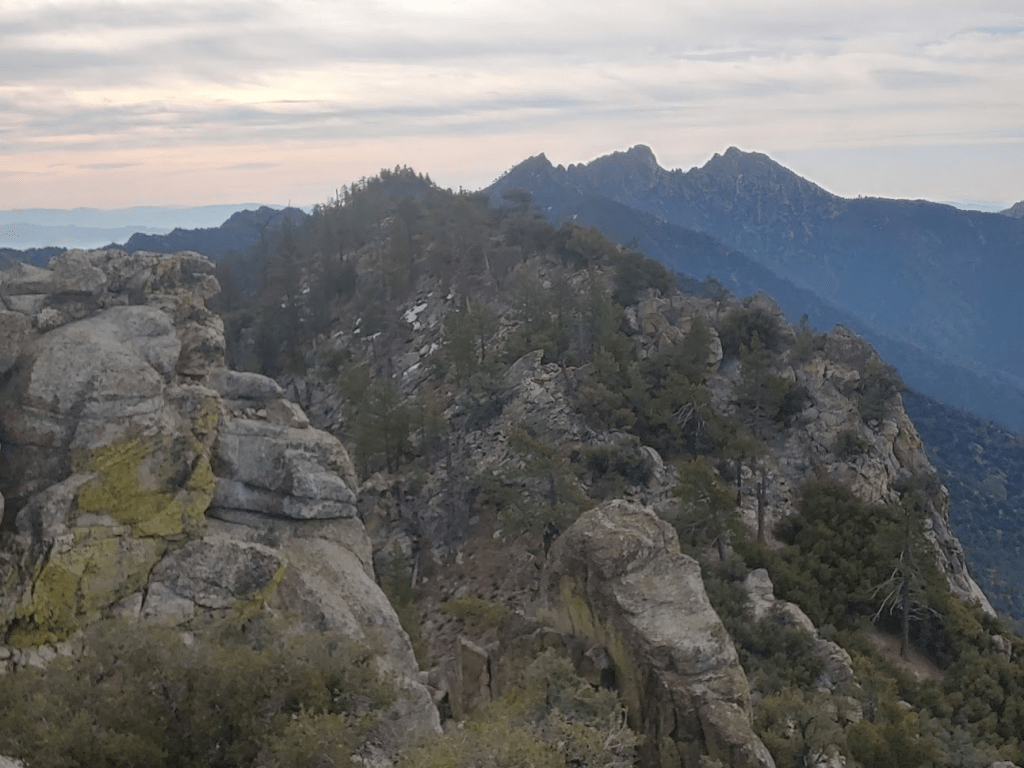 Despite the high clouds, I noted that visibility was actually better than it had been the previous 2 days. For the first time this weekend, I could plainly see the snow-capped summit of Mount Baldy all the way down in LA County.
