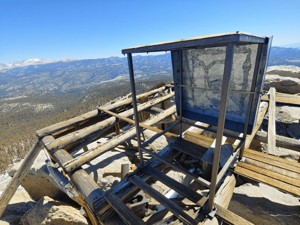 I signed the register which I was surprised to find had only been placed 2 days prior. I also investigated the remains of an old fire lookout which used to crown the summit. A stove could be seen beneath the old foundations.