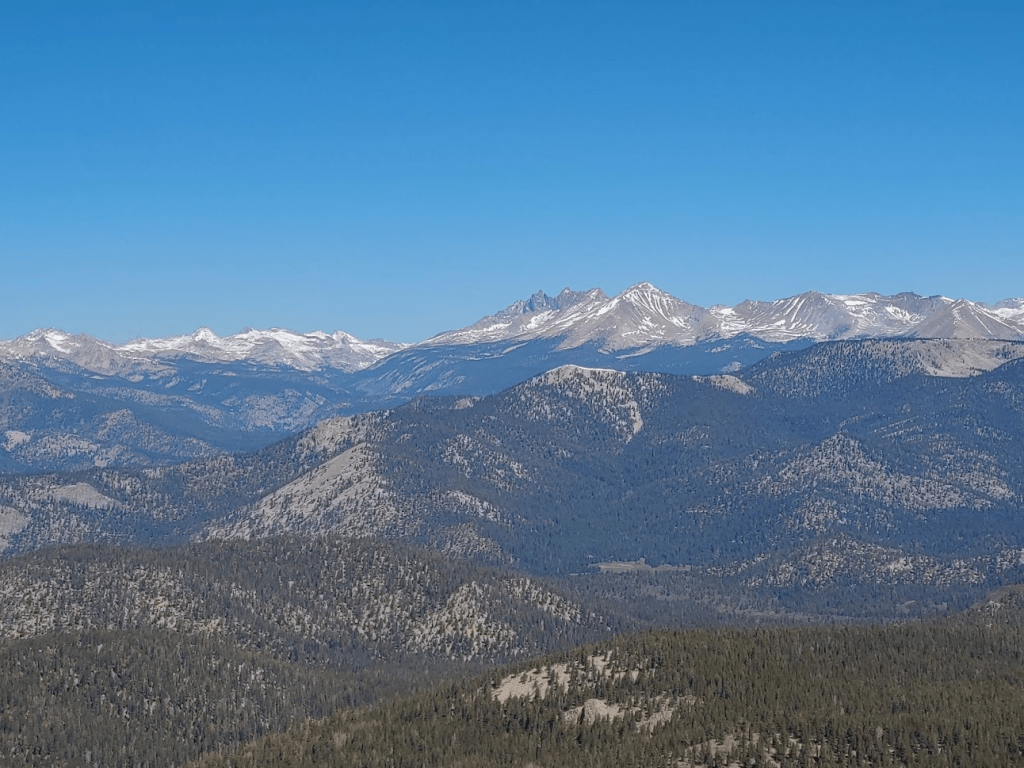 Next up was 9520 foot Smith Mountain, my primary objective for the day, and the 2nd of 3 SPS peaks I planned to climb during the weekend. I drove northwest on Sherman Pass Road, passing Kennedy Meadows and entering Sequoia National Forest. Sherman Pass Road gains a few thousand feet of elevation as the scenery transitions from the high desert pinyon forest to the tall pines typical of the High Sierra. After 26 miles I reached Blackrock Ranger Station where I turned north (right). I drove north on paved Forest Route 21S03 for a few miles and then turned right onto Forest Route 21S36. This road was also paved but in rough shape (still passable for any car). I was stopped by a fallen tree blocking the road a mile or so from where I wanted to park.