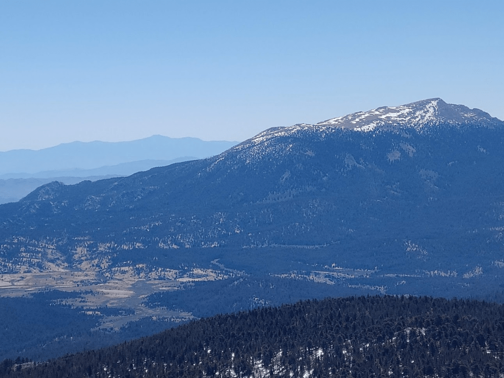 This hike would be short and steep. I was only about a mile from the summit, but I would need to climb 1300 feet to get there. Similar to yesterday’s climb, the grassy terrain made for solid footing as I hiked through a forest of pinyon pines.