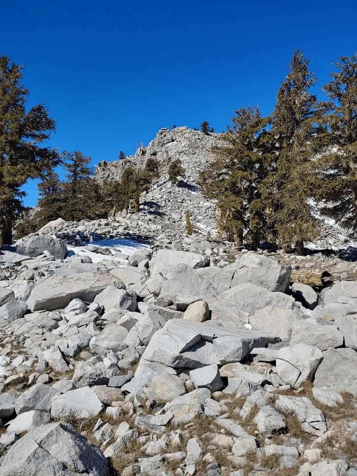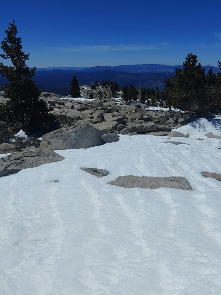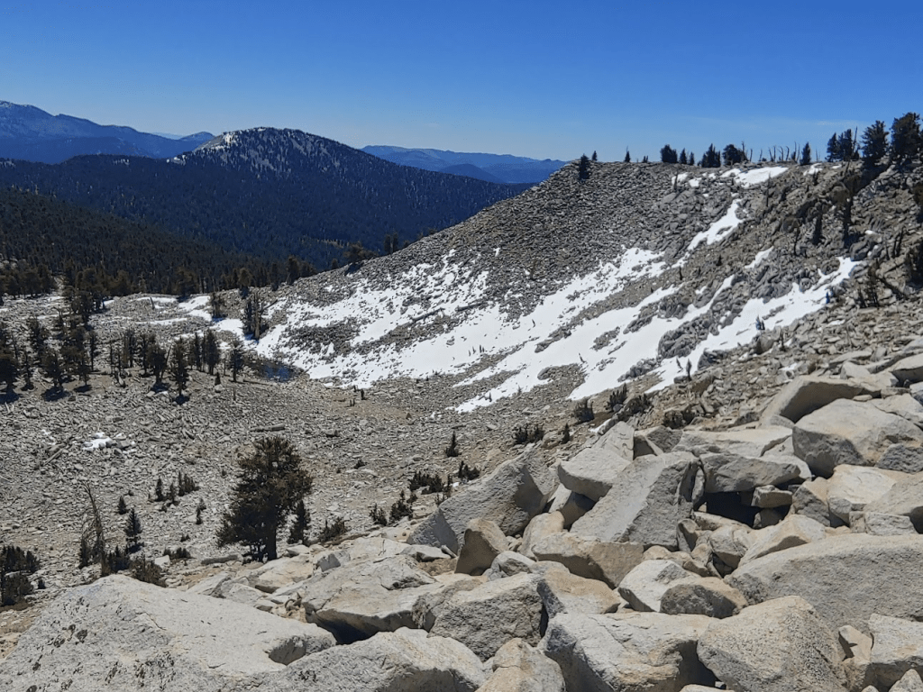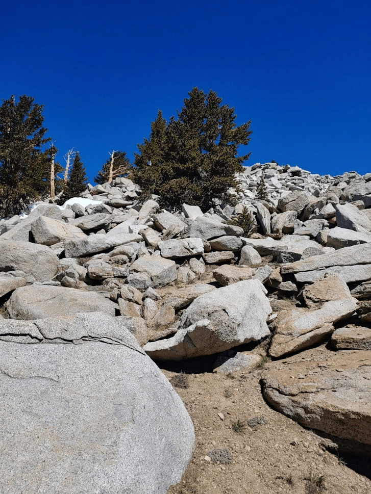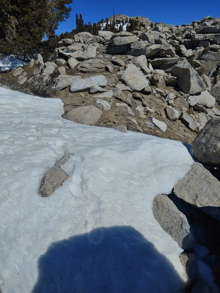 There were large patches of snow above 11,000 feet but I was able to avoid them on my way up. The boulder hopping was a lot of fun, especially after the endless miles through the forest.