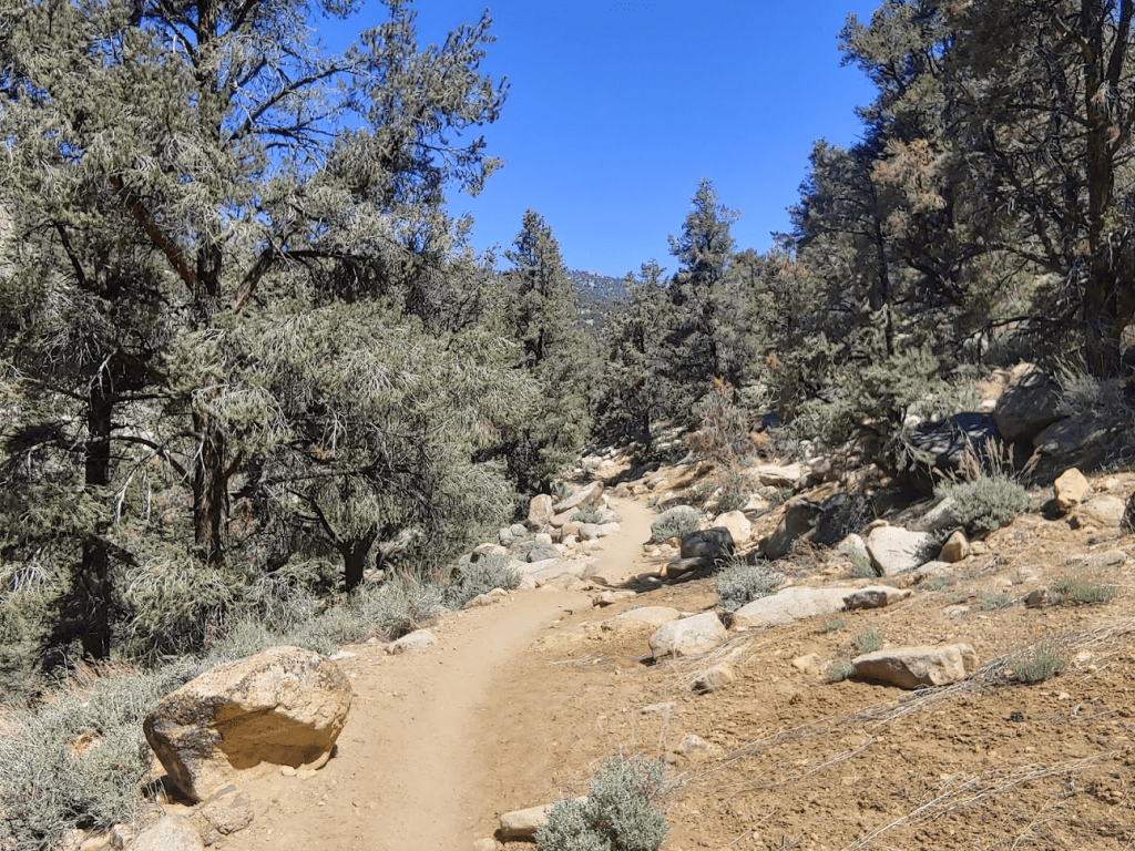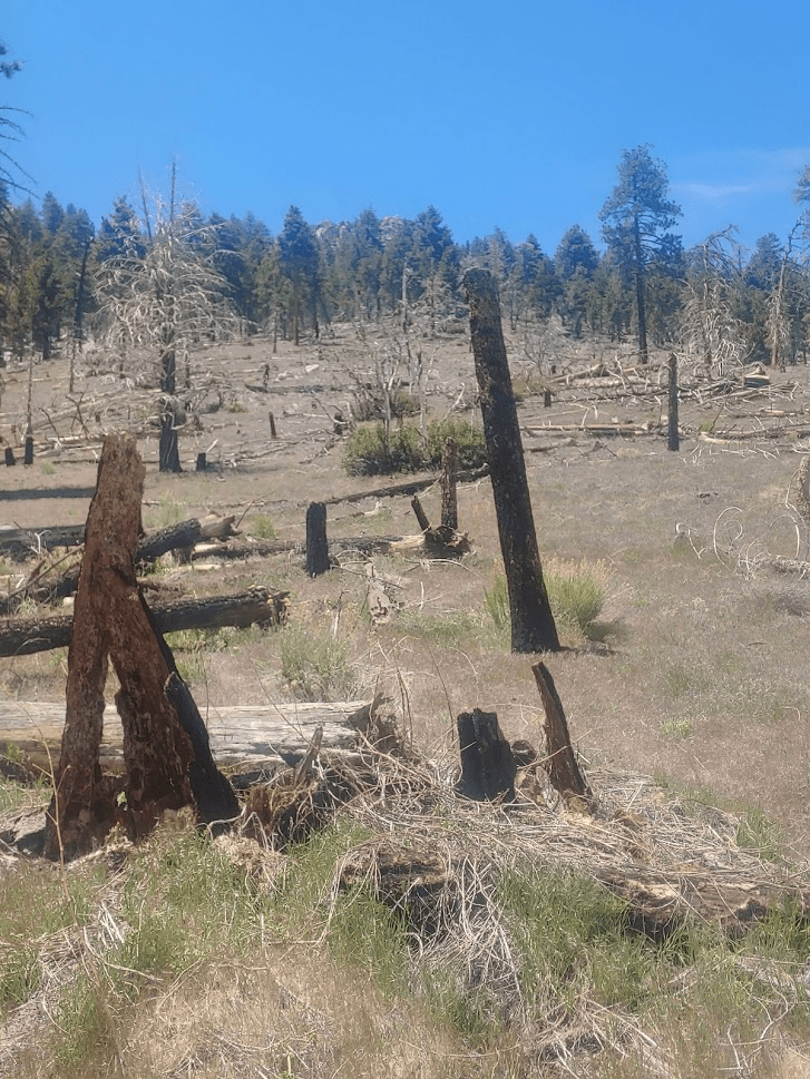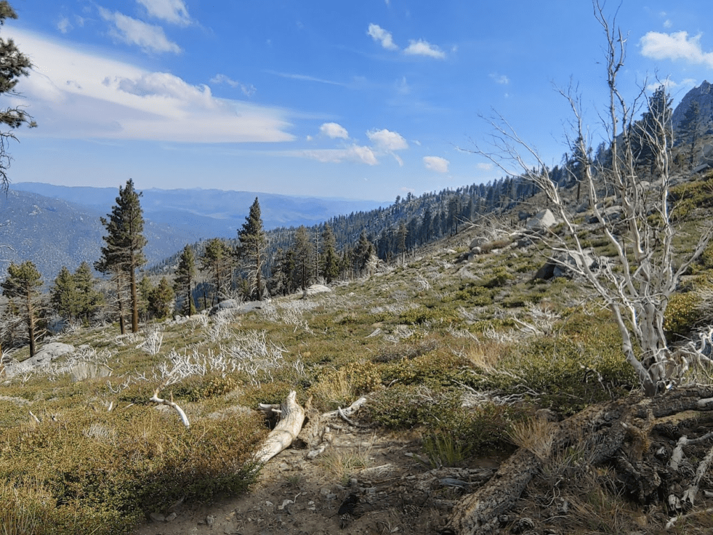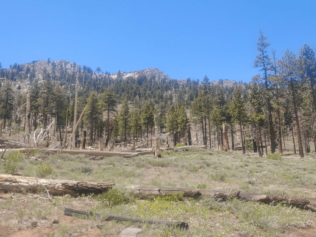 At 4.1 miles the forest abruptly ends. This area was burned pretty badly in a recent fire.