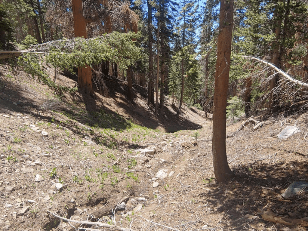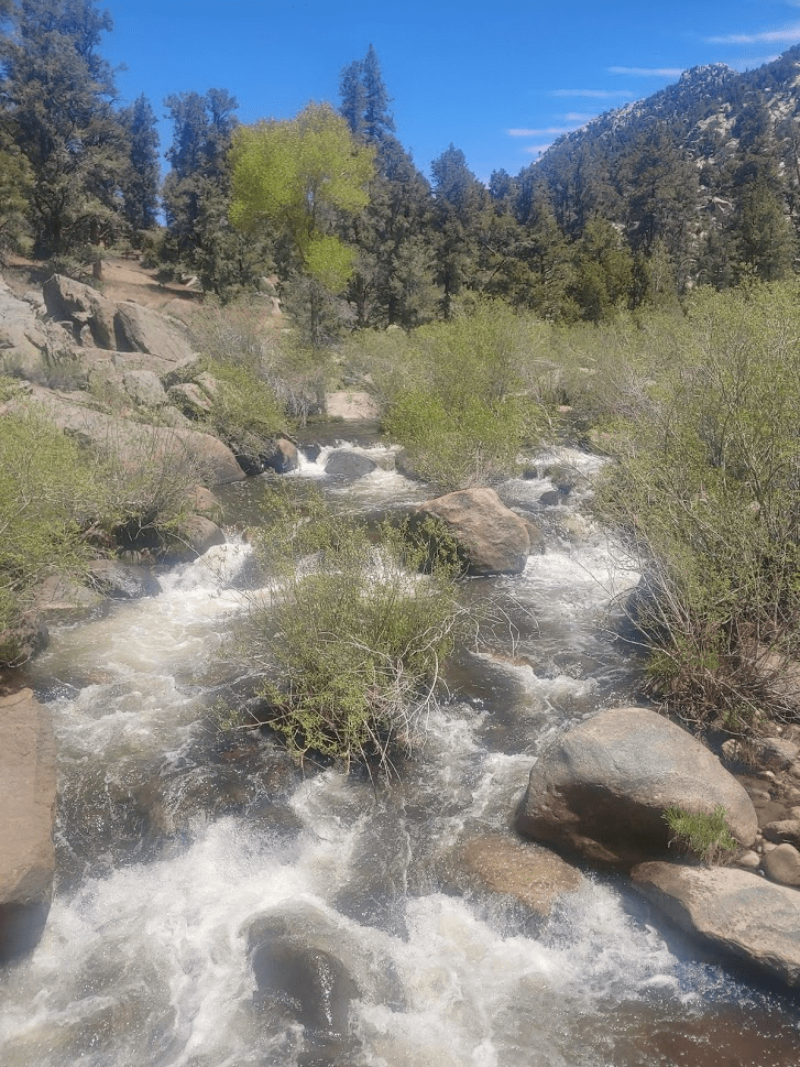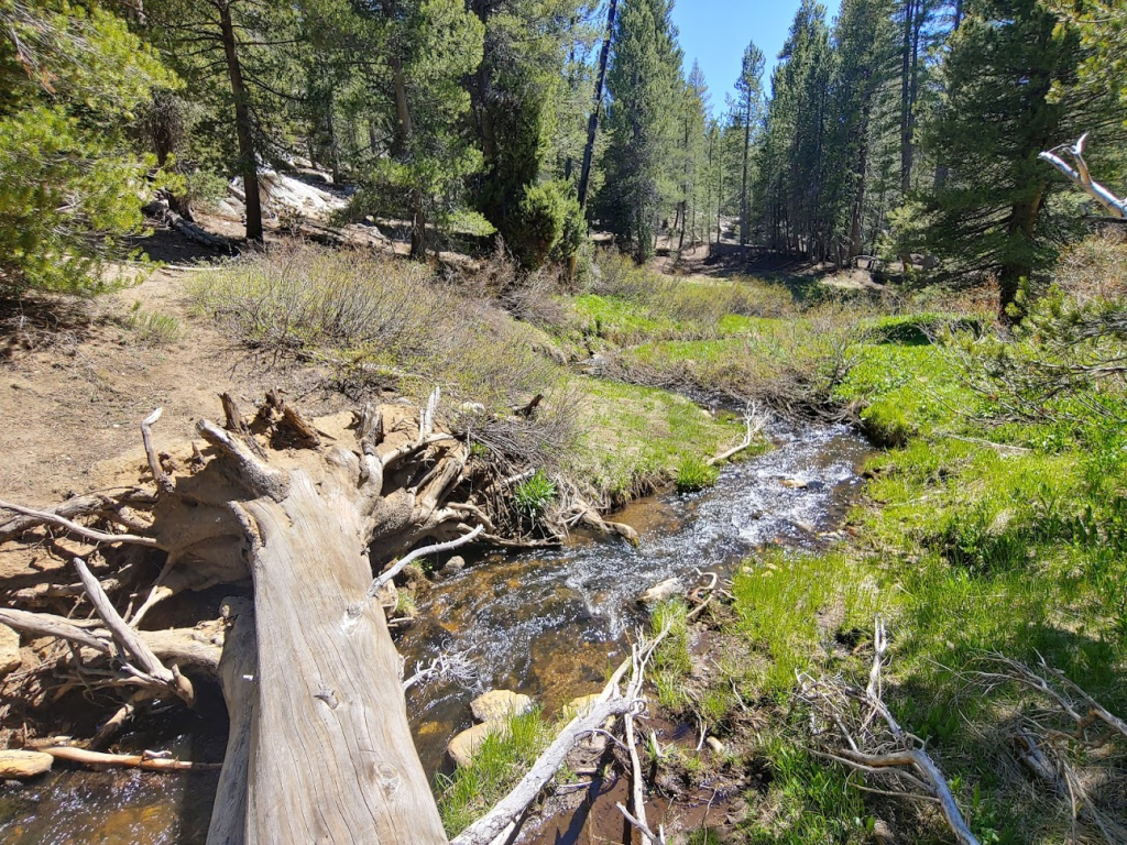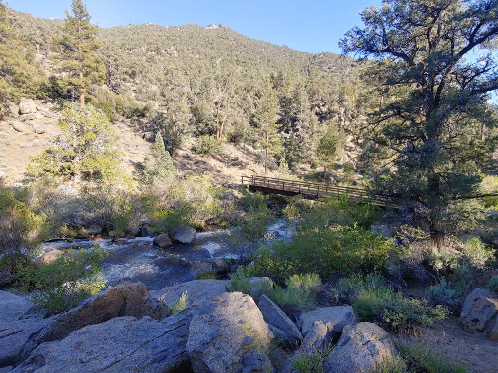 The Kern River is actually the boundary between Inyo National Forest and Sequoia National Forest, so the remainder of the route would be on the Sequoia (western) side. The trail starts to gradually gain elevation after crossing the river.