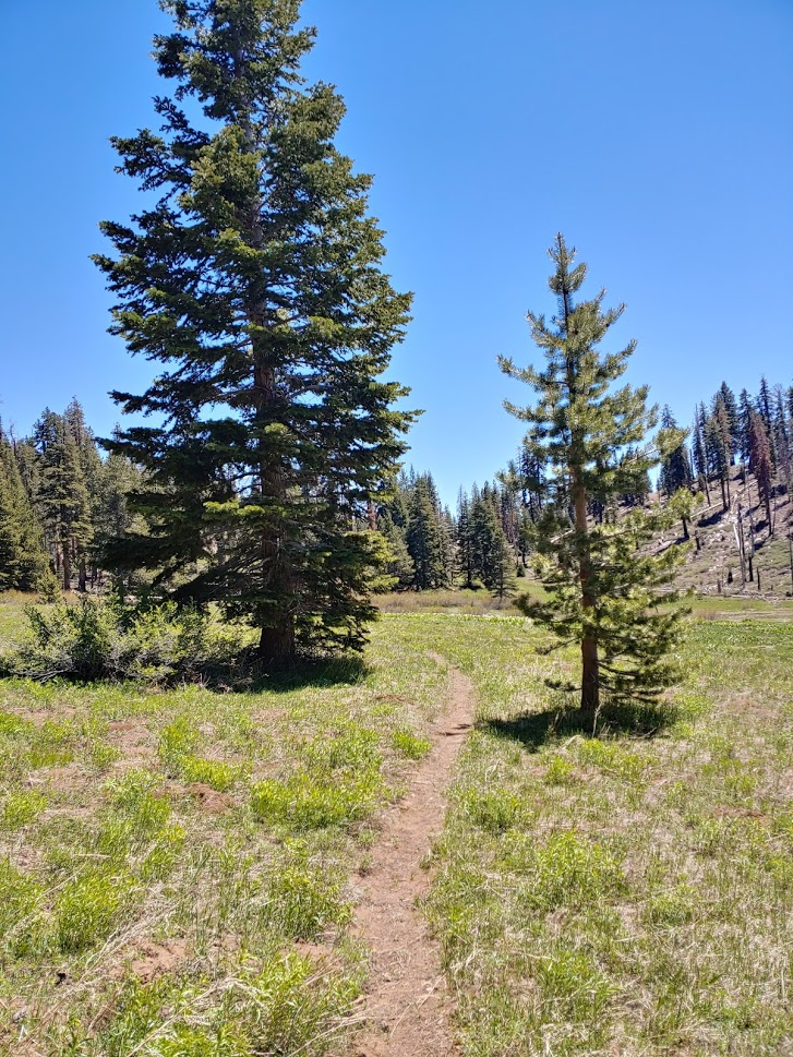At 9.25 miles I reached Redrock Meadow. This is where people usually camp overnight if climbing Kern Peak over 2 days. Sure enough, I saw 2-3 tents scattered around, but no sign of any people. There are a number of trails that split off from here.