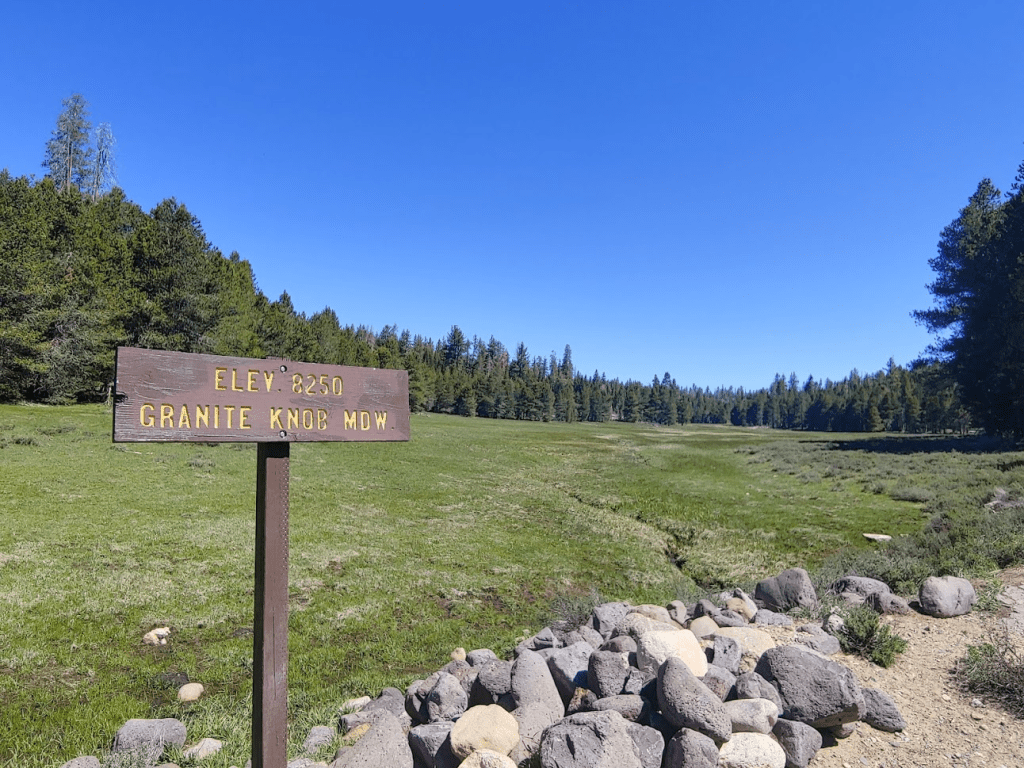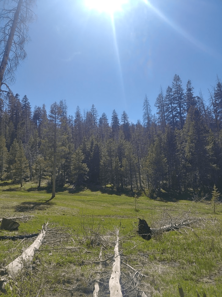 This hike would be short, so I wasn’t concerned about a few extra miles. As I was getting ready, I couldn’t find my trekking poles anywhere. I realized I must have left them on the ground when I was packing up after Chimney Peak. I was pretty upset with myself – I was sure they would still be there but there was no way I would have a chance to go back and look for them until after the following day. While I was cursing myself out for being so forgetful, a couple pulled up in a Subaru of their own and parked beside me. I chatted with them for a minute and it turned out they were planning to climb Smith as well. I started hiking at 10:26am from 8331 feet. I immediately was blown away by how beautiful the forest was – some of the pines must have been over a hundred feet tall. At 0.6 mile I reached a large clearing known as Granite Knob Meadow.