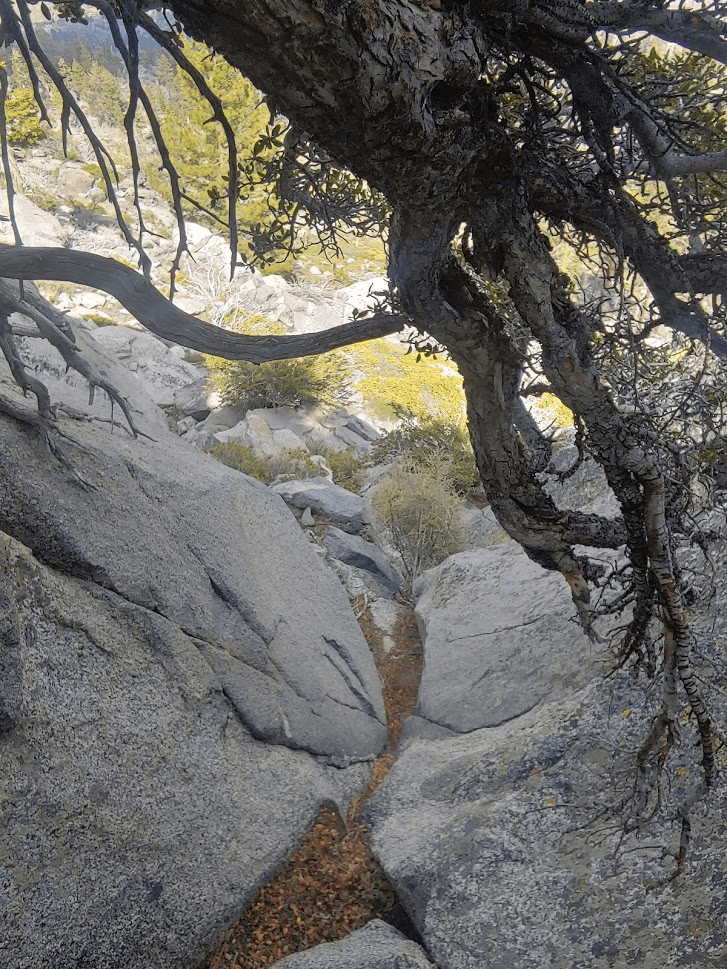 I started descending just after 3:30. Here’s a good picture of the crack I used to climb up and down from the summit: