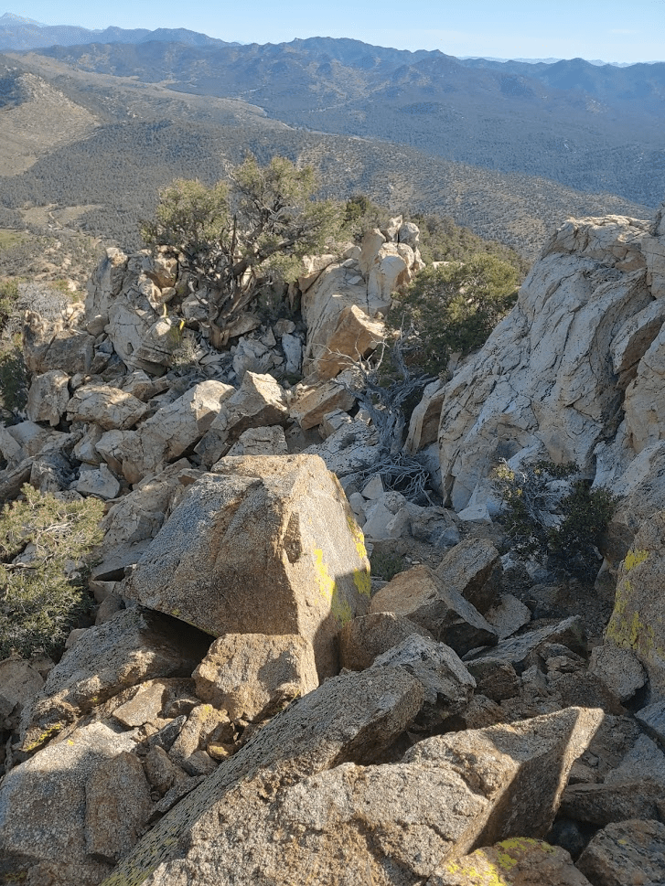 This middle bump required a little class 3 climbing, but thankfully there was no exposure. I found a crack I was able to climb part way up, and then I managed to “hoist” myself up a section near the top. At 2:54pm, I finally reached the true summit of Crag Peak! I was at 8.12 miles so far.