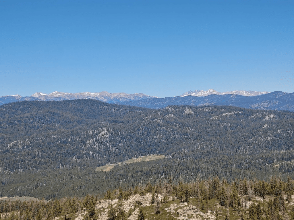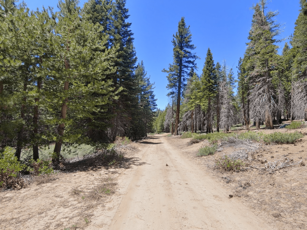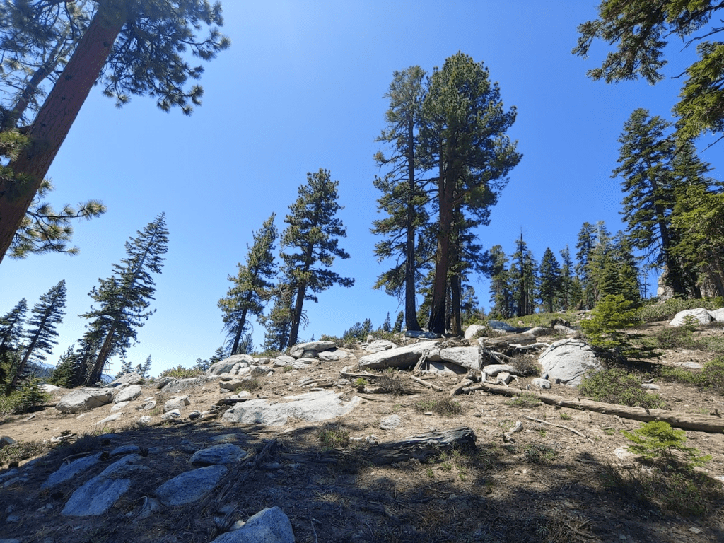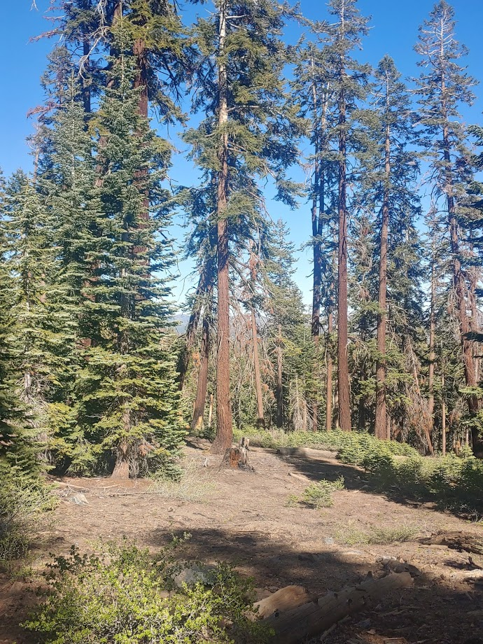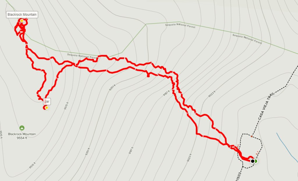 I still had plenty of time left in the day for more peaks, and my legs felt good still, but I really was concerned about saving energy for Kern Peak the next day. There also weren’t any more SPS peaks or wilderness high points in the immediate vicinity, so I decided to just do a quick ascent of a minor peak called Blackrock Mountain (9635 feet). This peak can be reached by a short climb from the Blackrock Trailhead, which is also the trailhead for Kern. I drove back to Forest Route 21S03 which I drove north on until it ends at the trailhead. The road is paved all the way so passable for any car. I was surprised by how large the parking lot is. There are 3 separate paved parking areas each with space for 15-20 cars. There were also restrooms, information boards, picnic tables, fire pits, horse corals, and even tent pads. I was also surprised to see how full the lot was (I guess not that surprising considering it was a holiday weekend). This trailhead is on the edge of the Golden Trout Wilderness, so I think it’s a popular starting point for multi-day backpacking trips. The trailhead sits around 8900 feet so it would be a quick 700 foot climb in under a mile. I began hiking directly west towards Blackrock Mountain at 2:46pm.