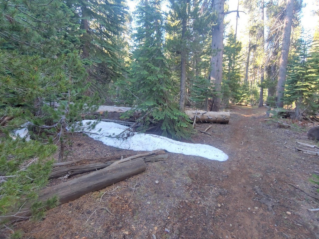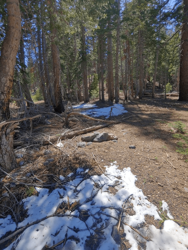 Redrock Meadow sits at 8626 feet, so it was a little depressing to think I was actually at a lower elevation than the trailhead. However, there are no more ups and downs from this point on – it’s all uphill from here. There are 2 different ways one could go from here. You could take the Cold Meadows trail to the west and then ascend the south ridge, or you could continue on the trail north and ascend from the east. I chose to ascend the latter option. I started to see patches of snow on the trail from this point on.