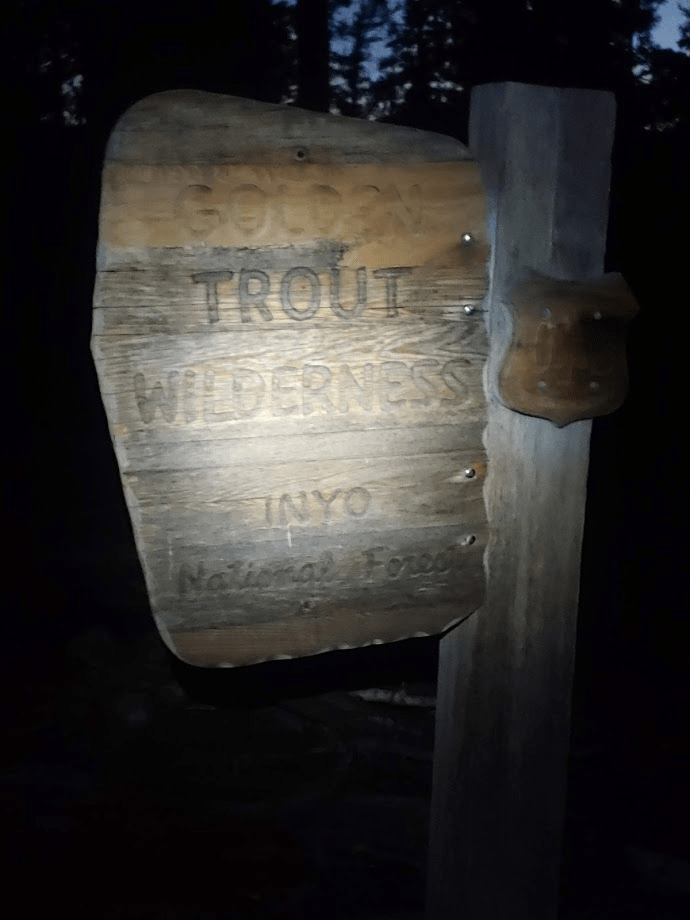 I woke up Sunday morning at 4:15am and it was still completely dark out. As I’ve alluded to a few times already, I had quite a day ahead of me. My plan was to climb 11,480 foot Kern Peak (another SPS peak). Kern Peak is an extremely isolated mountain – it lies in the middle of the Golden Trout Wilderness within Sequoia National Forest. It is often climbed as part of a multi-day backpacking excursion from either Horseshoe Meadows or Blackrock Trailhead. The route from Horseshoe Meadows is about 34 miles round trip. The route from Blackrock is shorter but still clocks in around 28 miles round trip. My plan was to dayhike the entire thing from Blackrock. A trail can be followed due north from the trailhead for 11.5 miles to around 10,000 feet. The remaining 2.5 miles/1500 feet is cross country. Even though the net elevation difference between the trailhead and summit is only about 2500 feet, the cumulative elevation gain would be closer to 6000 feet due to numerous ups and downs on the trail portion of the route. I started my hike at 4:52am from 8874 feet by the light of my headlamp.