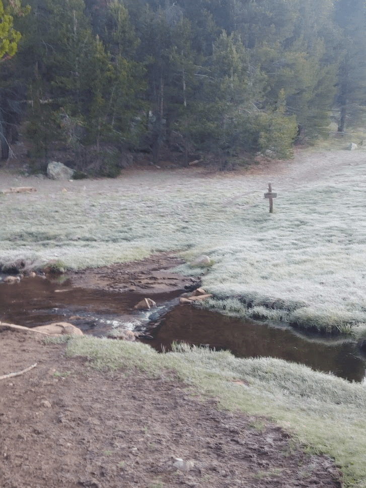 At around 2 miles I reached a very large meadow known as Casa Vieja Meadow. I was surprised to see a layer of frost covering the grass. It must have dropped below freezing overnight!