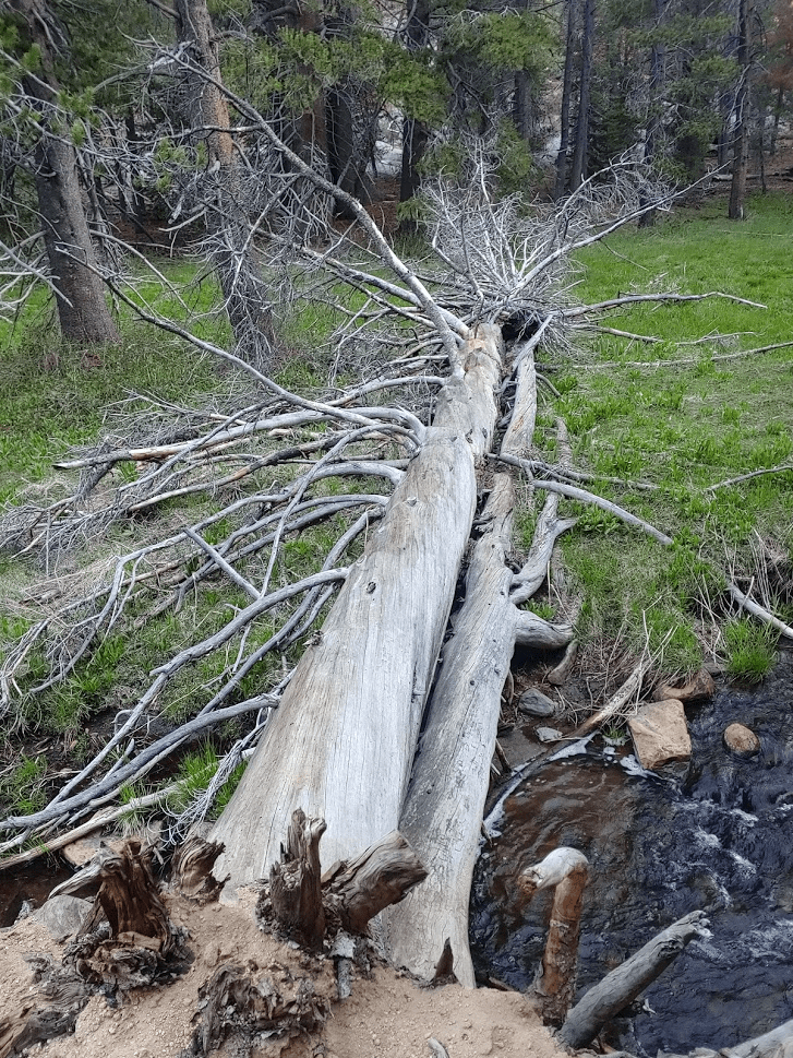 Just beyond the junction I crossed another creek using a downed tree that spanned the length of the creek.