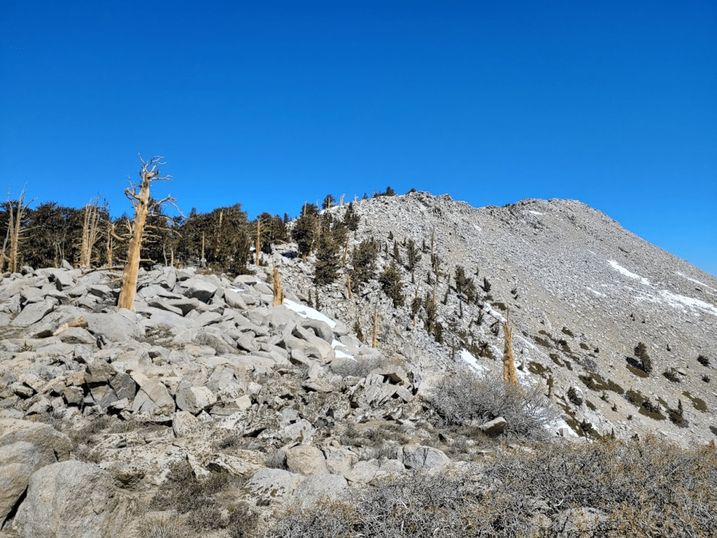I reached a plateau around 10,600 feet and turned directly west. The rocky summit came into view for the first time. Finally seeing my destination definitely gave me a burst of energy.