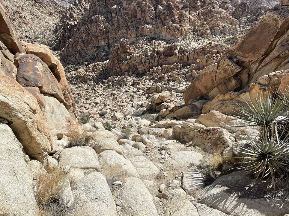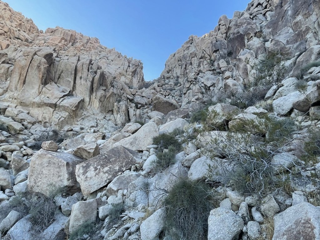 As expected, the wash was very steep and rocky. The large boulders slowed me down, but I found the scrambling to be a lot of fun.