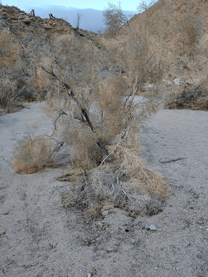 There were also smoke trees in the canyon, which I stopped to take a few pictures of. Smoke trees are so named because their gray colored “leaves” look like wisps of smoke from a distance. They tend to grow in dry watercourses such as the one I was in.