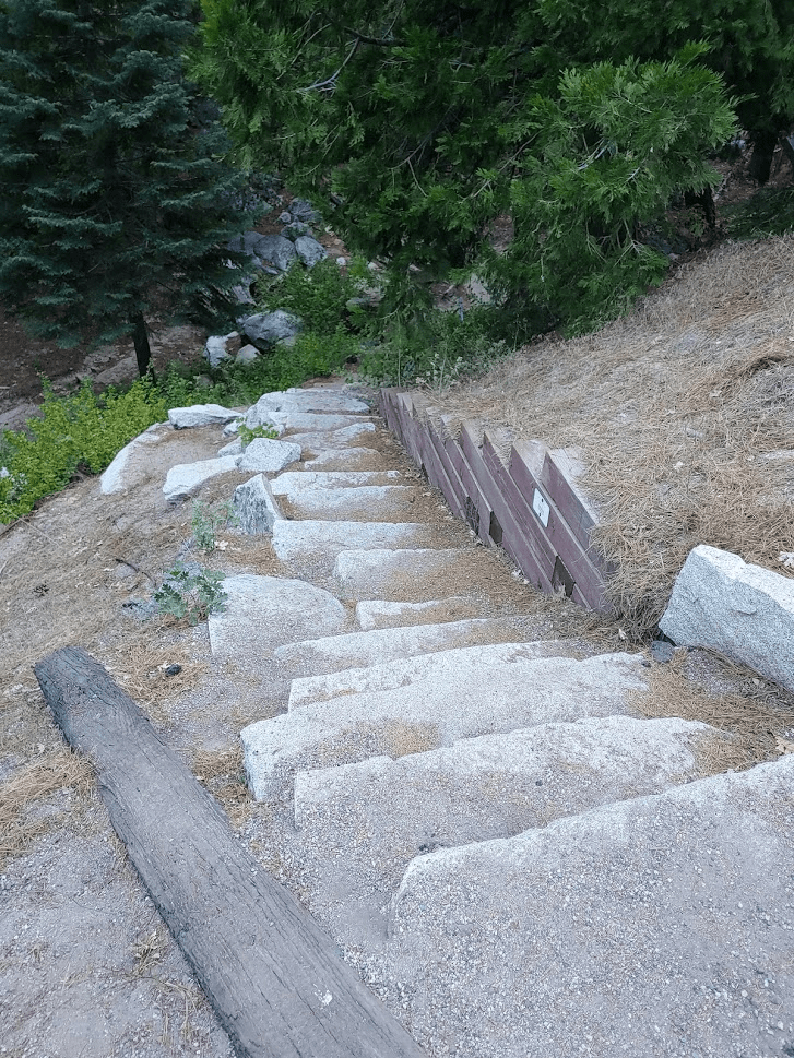 At 0.4 mile I left the road and climbed down some stairs to the right.