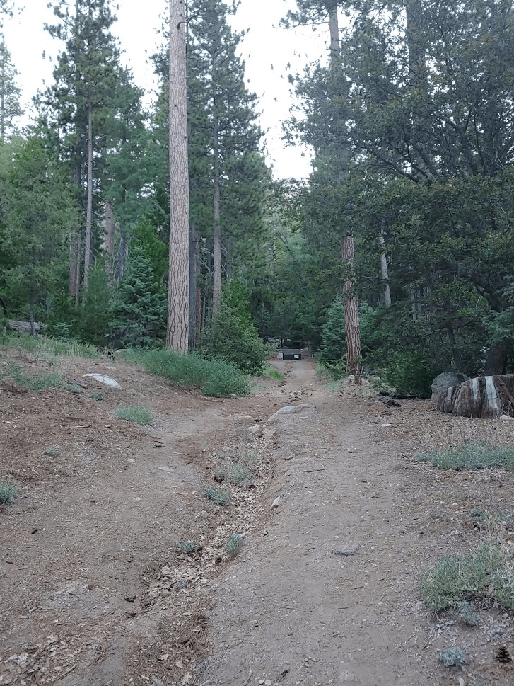 About halfway between the 2 trails, I slipped on some pine needles and fell face first. My left leg happened to fall directly on a branch that was sticking straight up. I fell right on it with the full force of my weight, right above my left knee. OUCH! It hurt really bad and took me a couple minutes to regain my composure. I didn’t think too much of it – I’ve slipped and banged my knee against rocks plenty of times before and it usually hurts pretty bad for a few minutes and then goes away. Unfortunately, I was still only halfway up the steep slope I was on. I managed to reach the top, but I was really in a lot of pain. Shortly after that I reached the Deer Springs Trail at 2.92 miles.