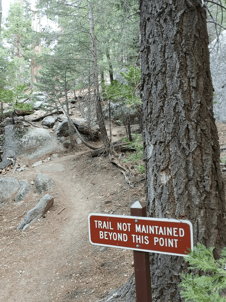 The road turns into a single track trail and makes a sharp left. At 0.9 mile I passed a sign indicating the trail is not maintained past this point.