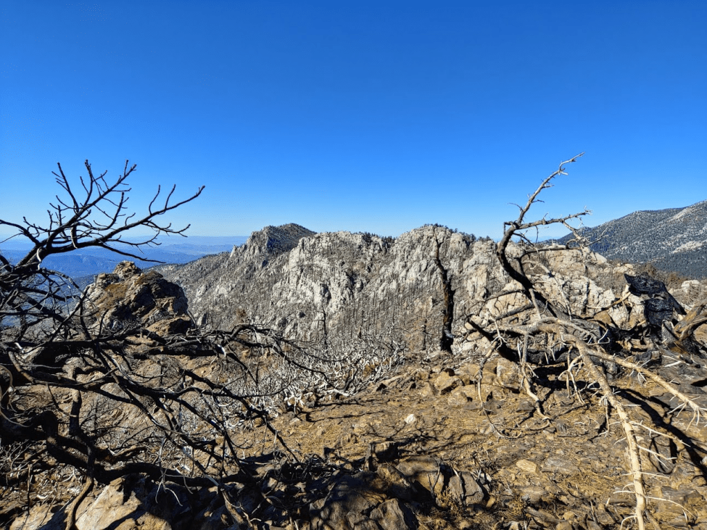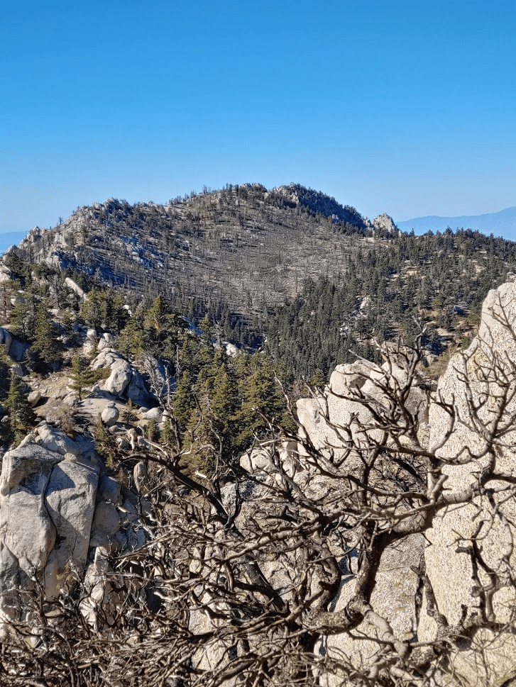 I signed the summit register and then started towards my final destination for the day – Red Tahquitz. The area between these 2 peaks was heavily damaged by fire. It was a fairly short distance between these 2 peaks but entirely off trail so the going was a bit slow.