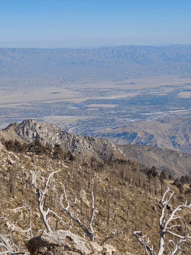 For the first time of the day, I had excellent views of the desert to the east. I could see Palms Springs and other desert cities, as well as the mountains of Joshua Tree National Park behind them.