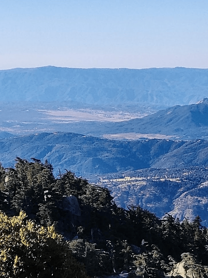 A little more distant but equally (if not more so) impressive was Mount Baldy to the northwest. At 10,046 feet, Mount Baldy is the highest point in Los Angeles County. I climbed Mount Baldy in December 2017.