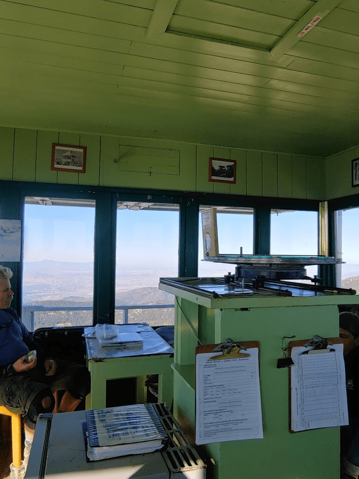 I went inside the tower and found 5 forest service volunteers hanging out. I chatted with them for a few minutes and found out that they would be closing the lookout for the season since snow was predicted to fall in the next few days.