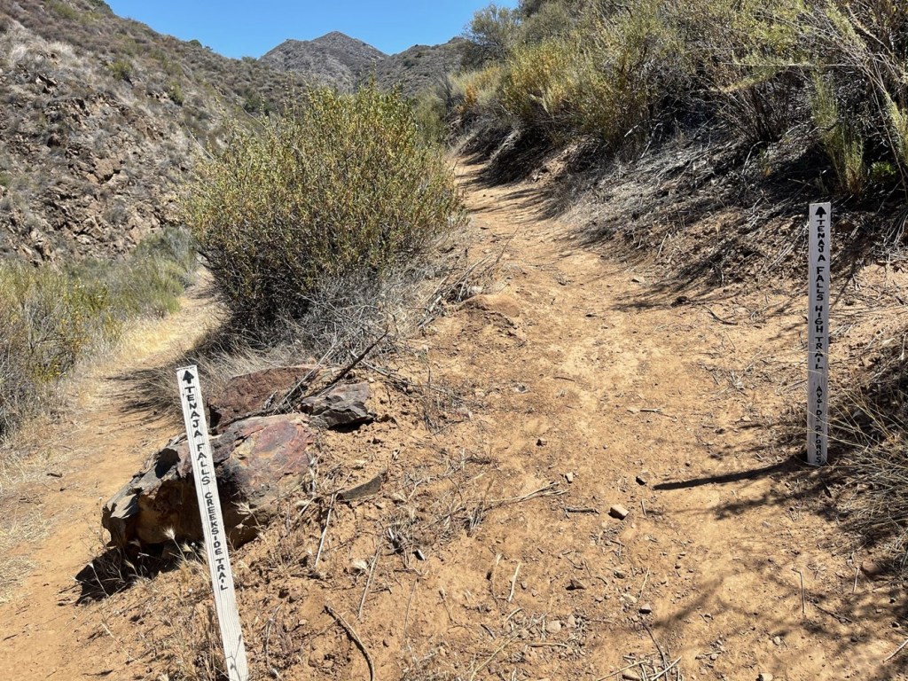 At 4.3 miles we reached the Tenaja Falls Trailhead. One could park here and do a very short hike to the falls and back. It would be about 1.5 miles round trip from here.