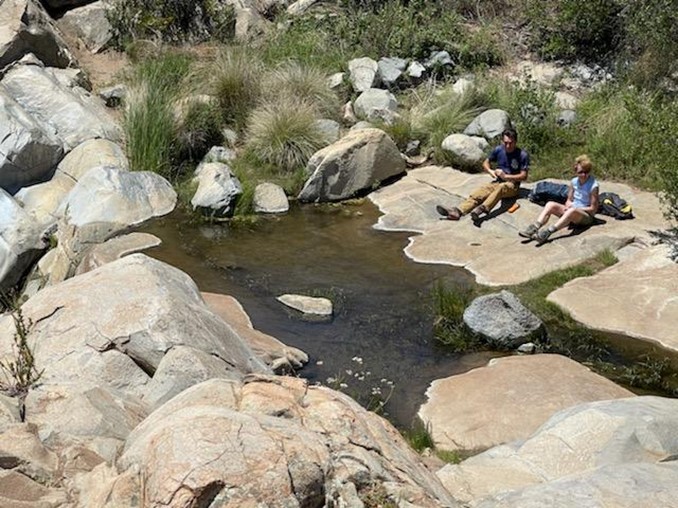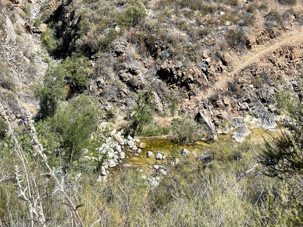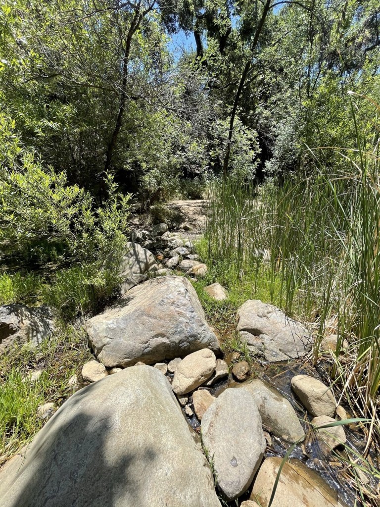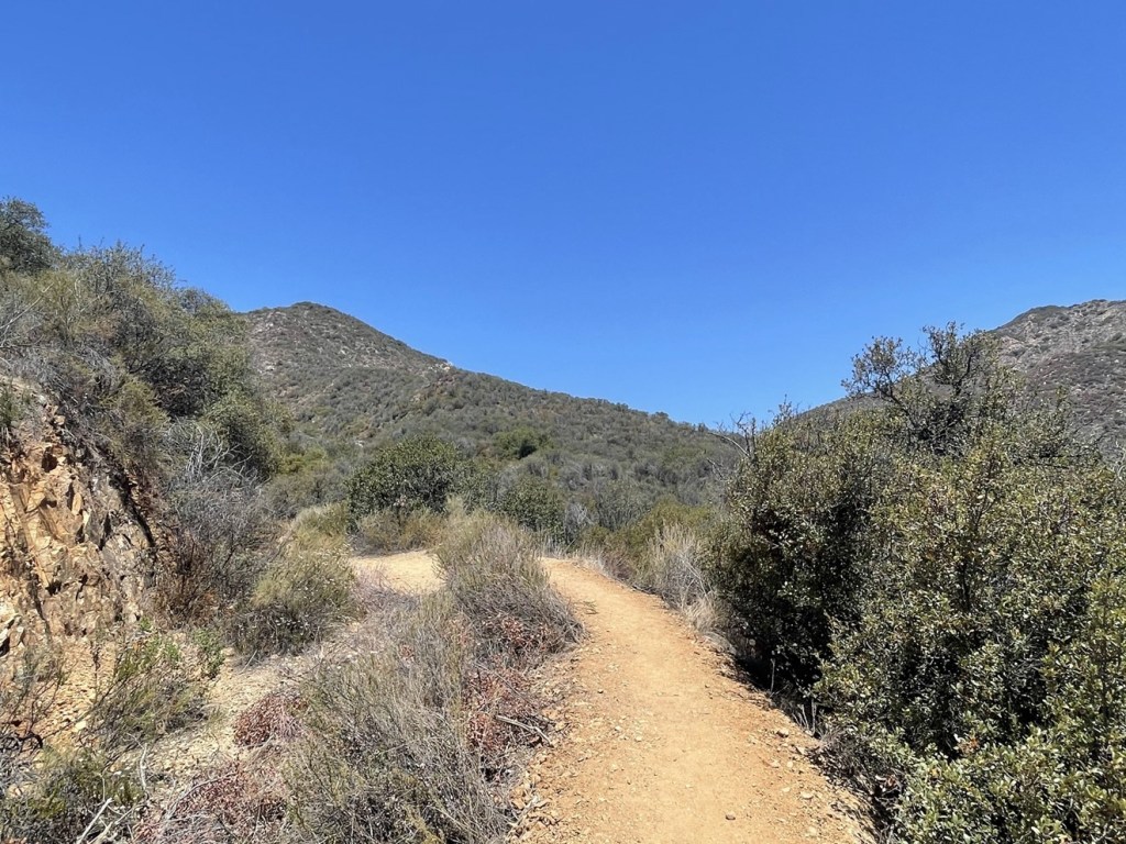 We soon reached the bottom of the canyon and found the creek to be dry. We crossed it and then reached Fisherman’s Camp at 1.9 miles. There were a few nice flat spots for camping (I forgot to take pictures here). We then backtracked a short way to a fork and went left onto the San Mateo Canyon Trail.