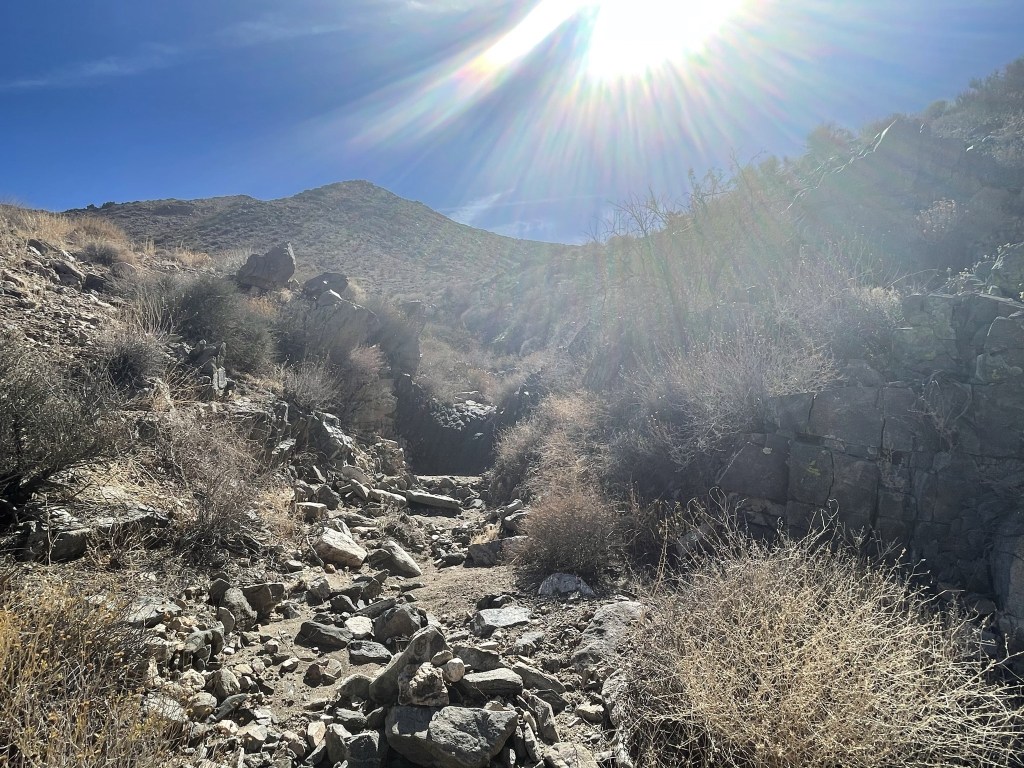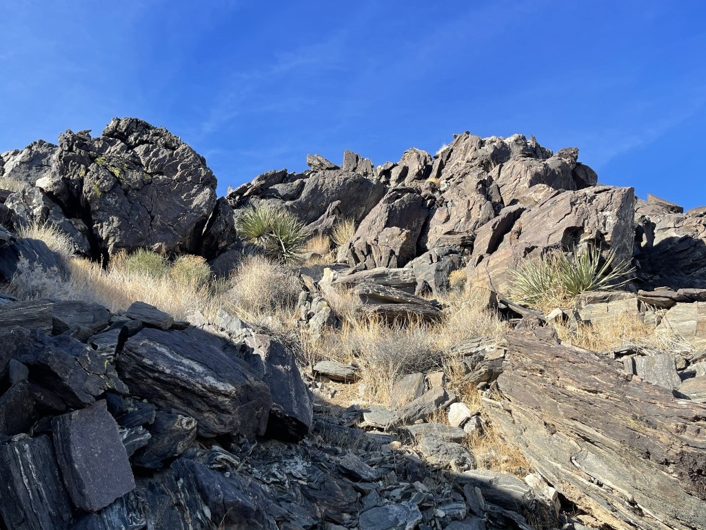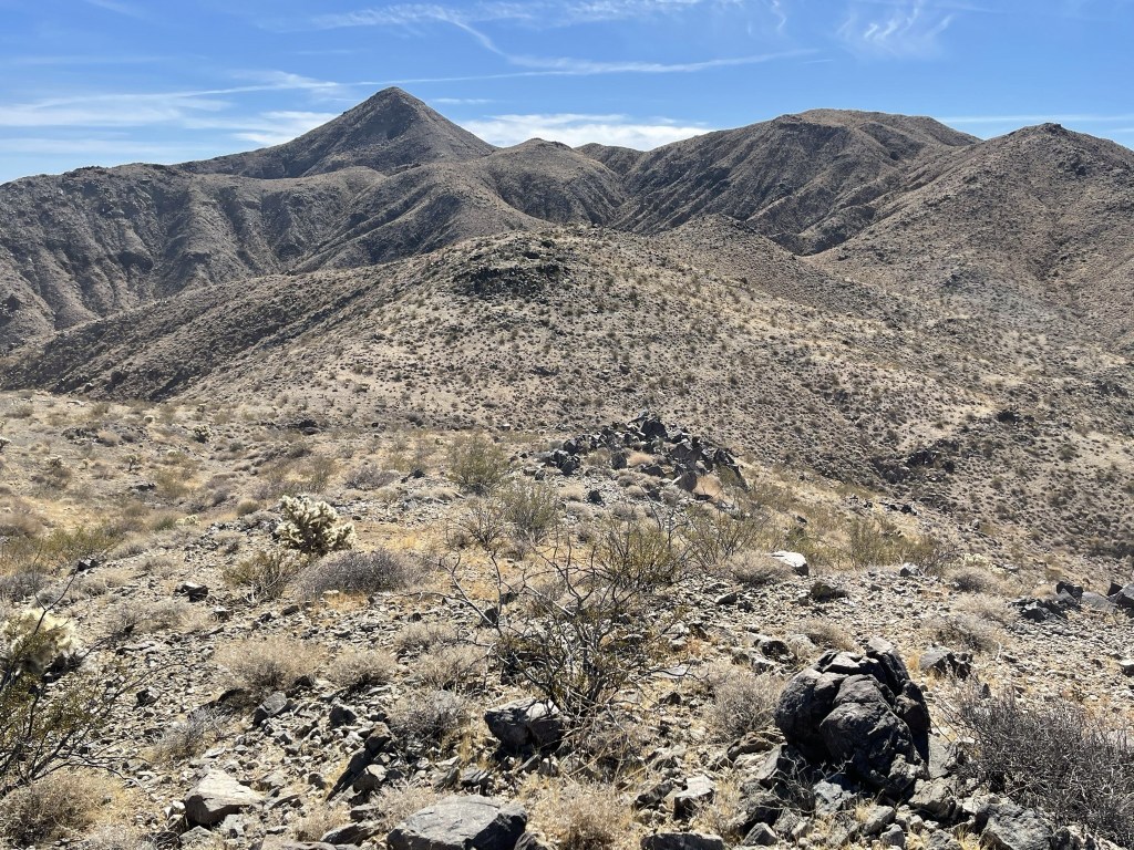 Eventually I climbed out of one of the washes and ascended a ridge. I turned west and began the steepest part of the hike.