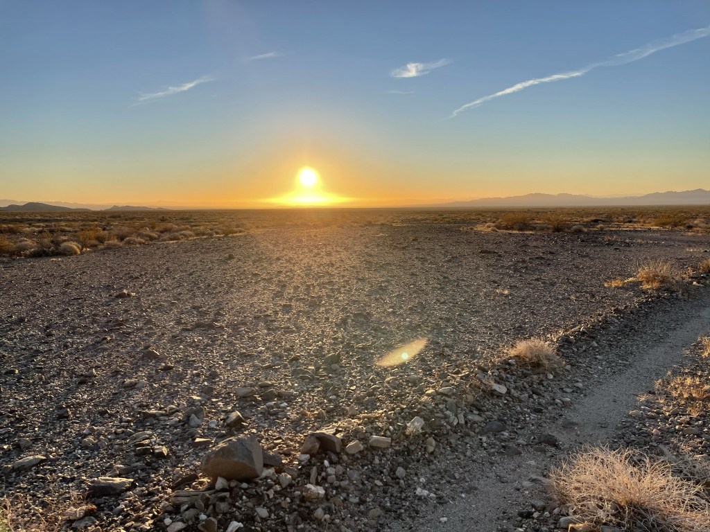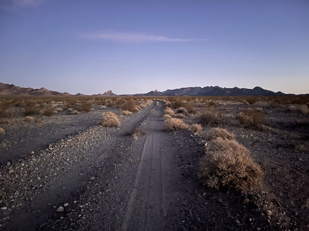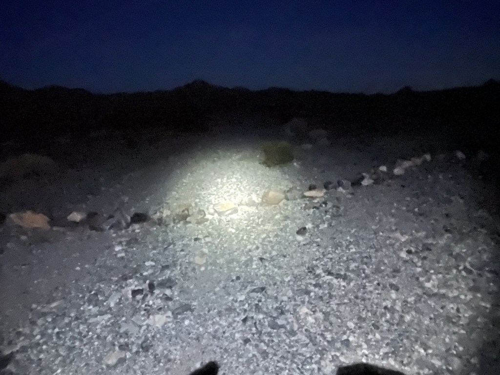 I used my headlamp for the first 10 or 15 minutes. I actually had difficulty following the road through the wash on foot, so I ended up making a small shortcut to the east and then picking up the road on the other side. I figured if the road was this difficult to follow on foot, I definitely made the right call to not attempt to drive through it in the dark.