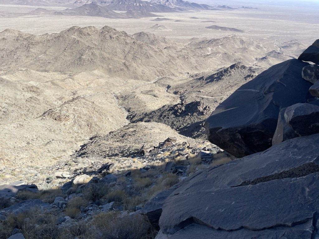 To the west I could see the Coxcomb Mountains within Joshua Tree National Park. Far beyond that I could see snow-capped San Jacinto (far right) and San Gorgonio (not pictured).