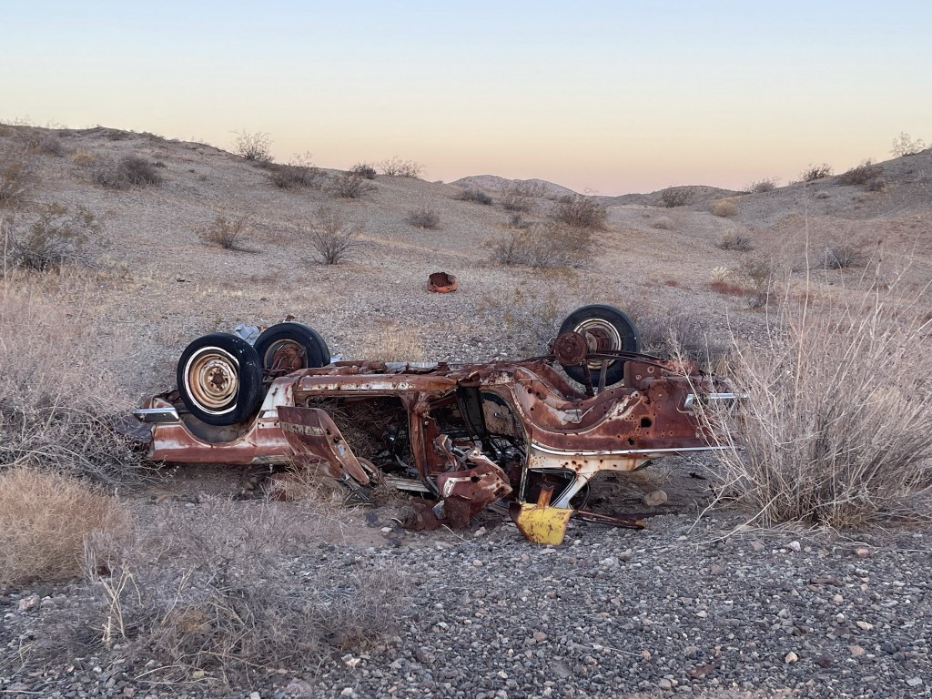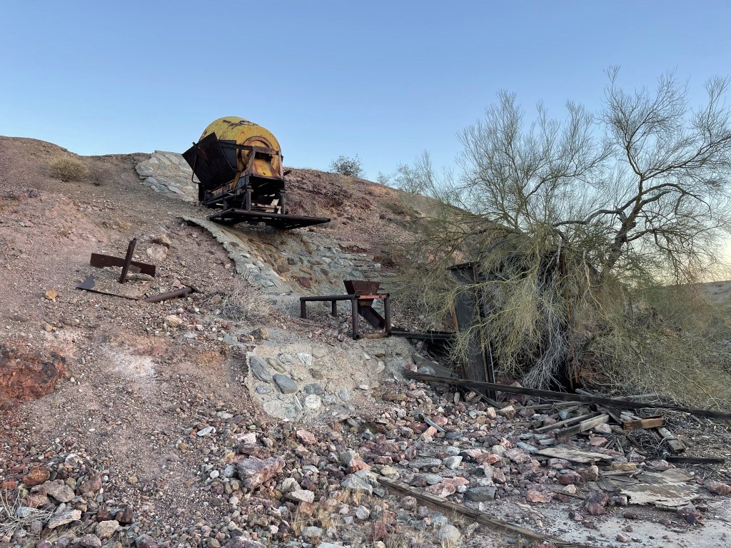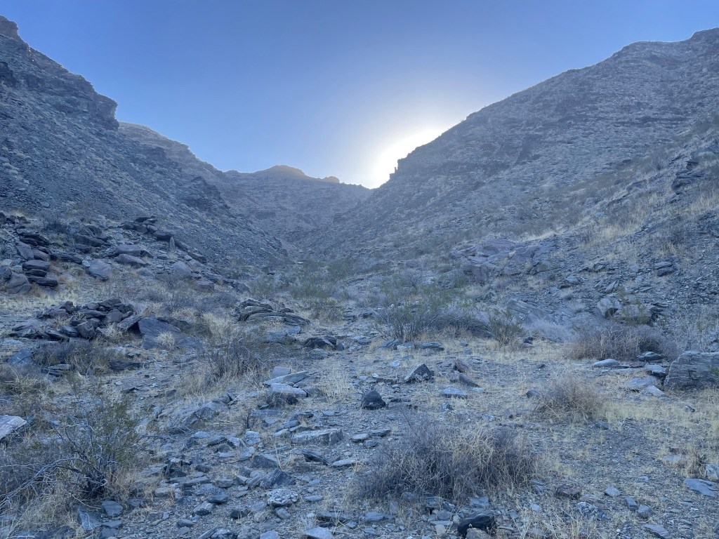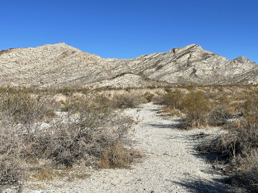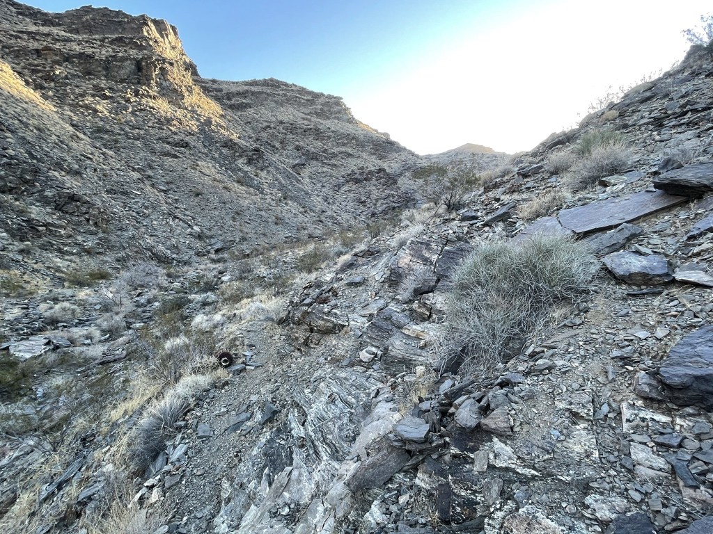 I generally don’t like seeing junk in the desert and other wilderness areas, but old mining relics are kind of cool. It’s fun to think about the history behind these places. I proceeded past the mine and into a wash heading south towards the mountain range.