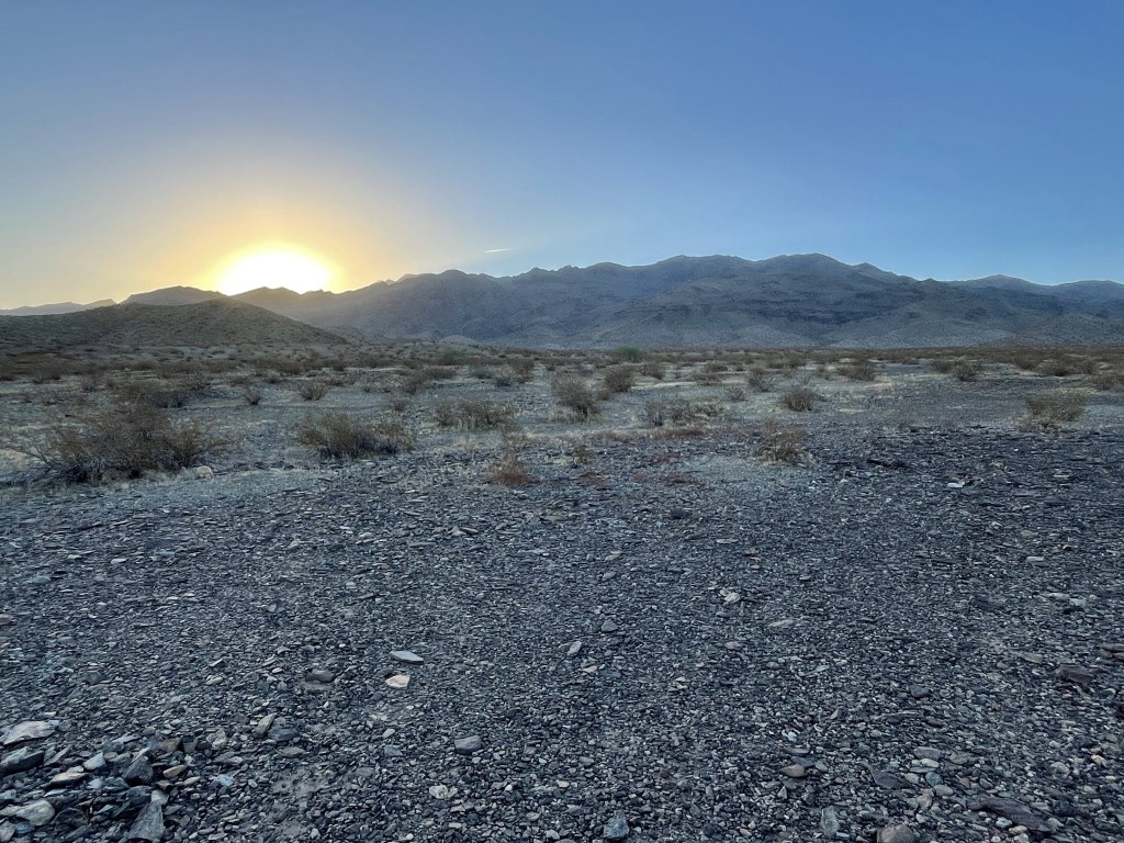 The initial descent was very steep, so I had to go carefully down the loose slope. Once I reached the desert floor it was easy hiking back to the car. I was able to enjoy the sunset as I got close.