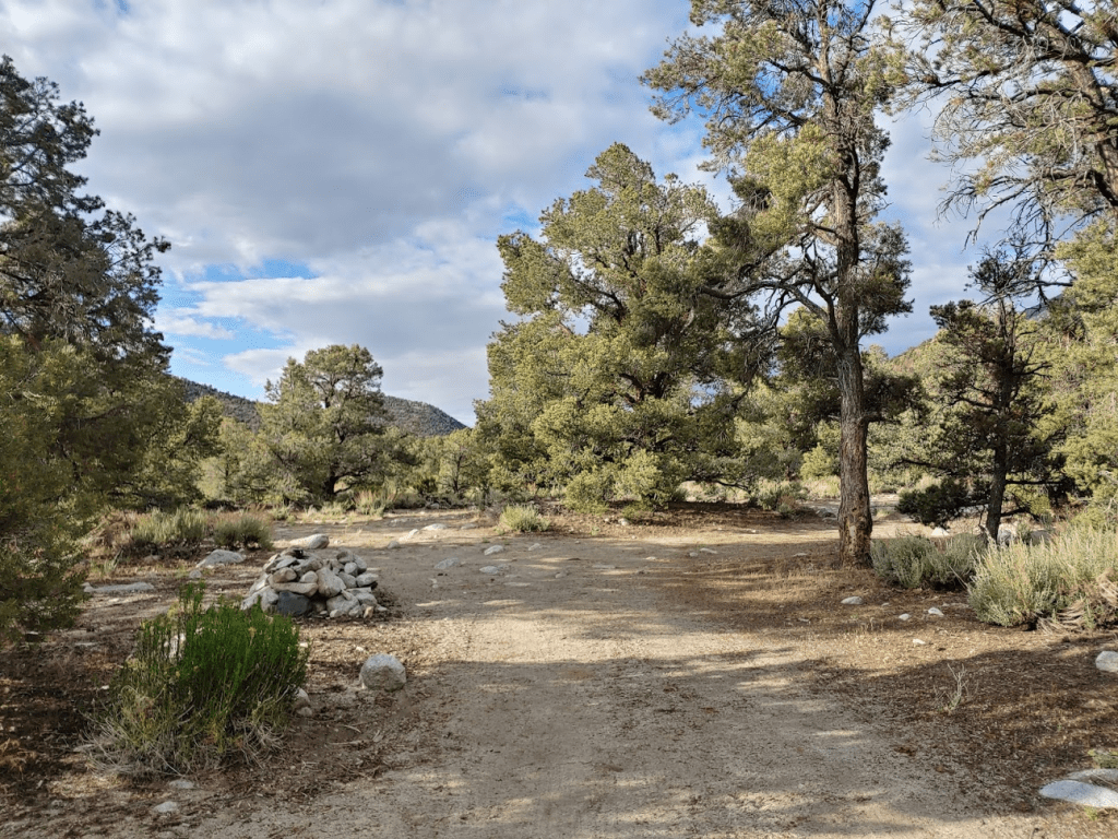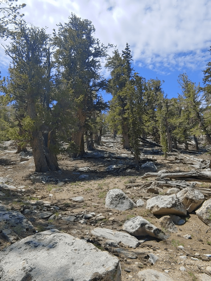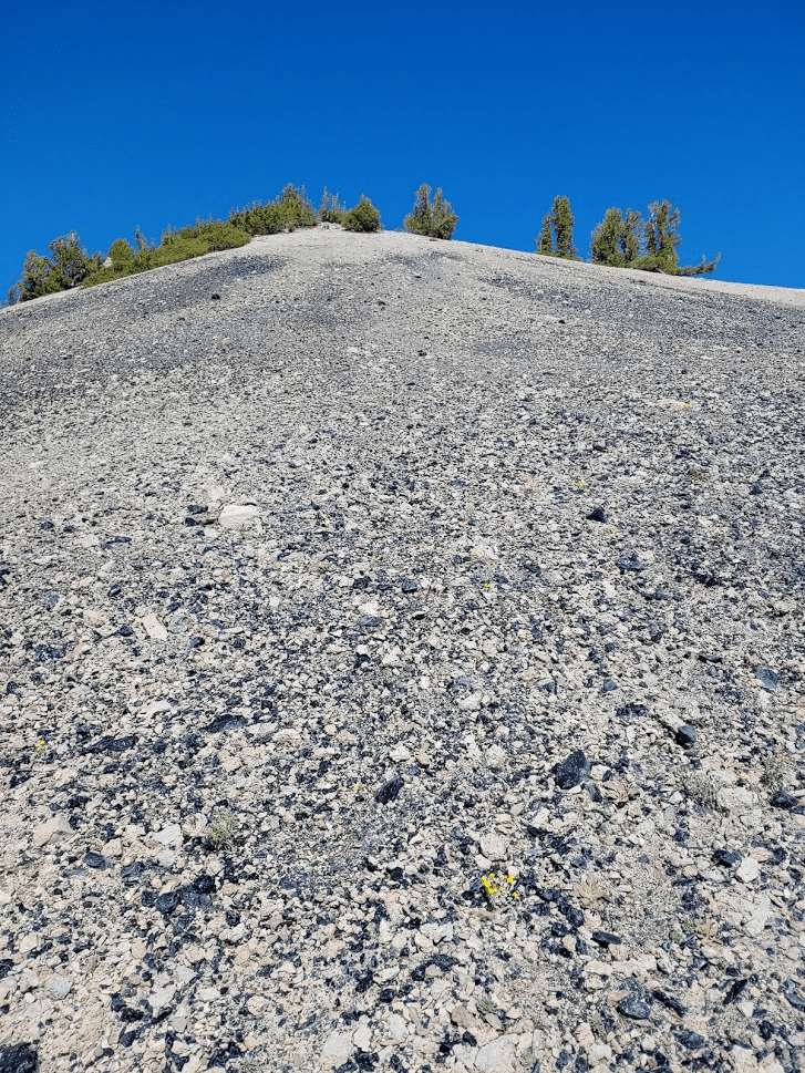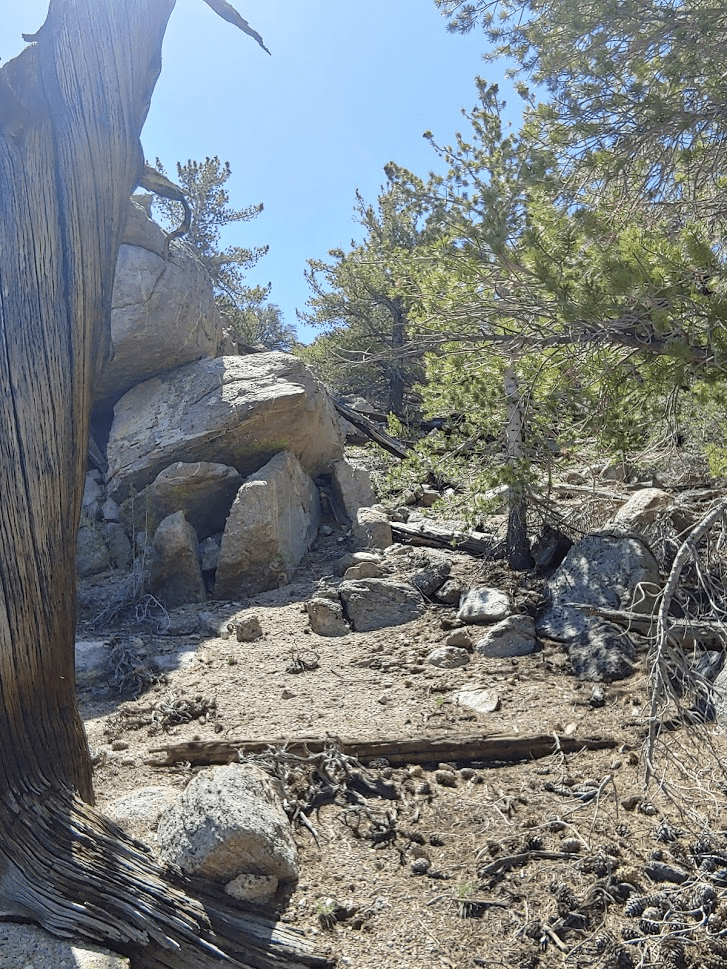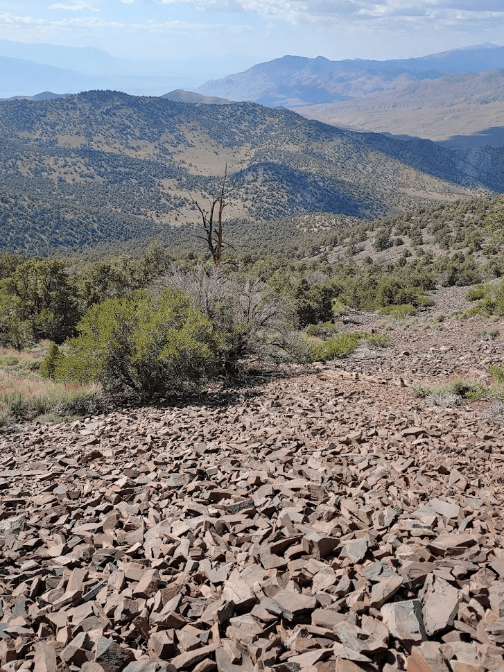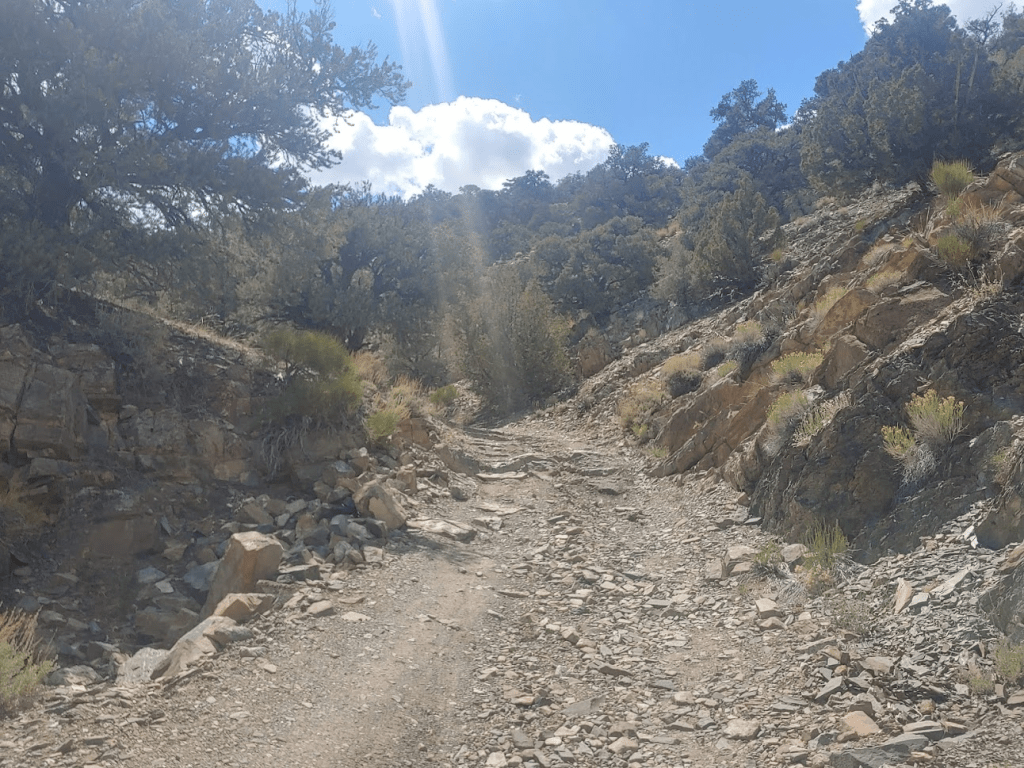 Once I reached Death Valley Road, I turned left and went 2 miles before turning left (south) onto Forest Road 9S15 (Hines Road on Google Maps). Zdon says to follow this road 5 miles up to a mine at 8800 feet. I made it 3 miles before reaching a rough spot where I decided to park. A small caravan of 3 jeeps came down the other way as I was parking. I chatted with the lead driver for a minute and he advised I didn’t go any farther in my Subaru. Good enough for me. I started hiking at 3:22pm from 7739 feet.