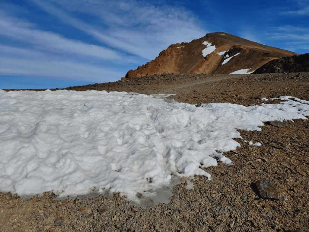 I walked right up to the large snowfield below the summit to get some pictures.