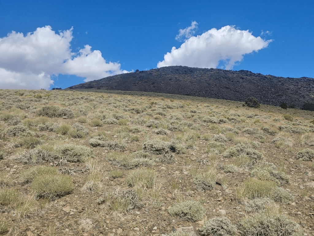 This hike would be less than a mile one way and under 1000 feet, so it would be a perfect quick hike this late in the day. Navigation was simple – this was a basic “climb until you hit the top” kind of hike. The grassy slopes turned rocky about halfway up.