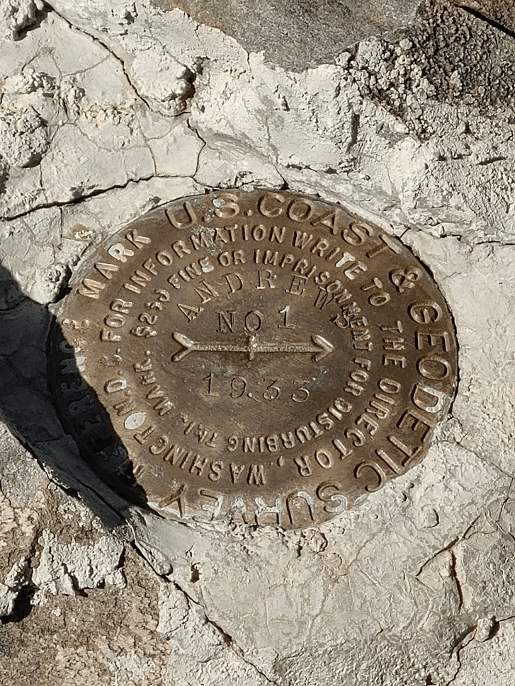I reached the top at 11:38am at 5.8 miles! I located a benchmark and 3 reference markers including one which was pointed directly at the ground.