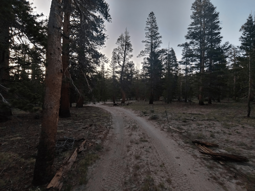 I drove back to Big Pine, and then went north on US-395 to the town of Bishop. Bishop isn’t a large city by any means, but it is the largest population center in the Owens Valley and Inyo County. It was 105 degrees in Bishop, so I quickly filled up on gas and got a bite to eat before heading out. I then went north on US-6 to Benton, and then west on CA-120 for 17 miles to dirt McGee Canyon Road. I drove south for 13 miles on well graded dirt roads until I reached Sawmill Meadow. Sawmill Meadow consists of just an outhouse, one picnic table, and some open area for camping. I was the only one there on a Friday night, so clearly not a popular spot. The elevation is around 9000 feet, which kept temps cool enough for me to have a great night of sleep.