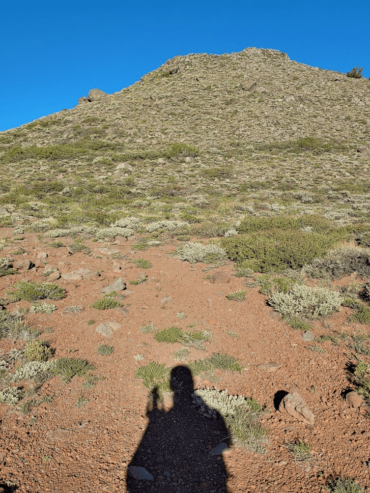 At 3.96 miles, I passed 3 hikers on their way back down. They apparently had started at 2am (those were the headlamps I had seen) with the idea of catching the sunrise on the summit. They said they made it nearly to the top but had to turn around due to extreme winds. They warned me the wind only gets worse the higher you go. I wondered how the 2 runners ahead of me were going to do.