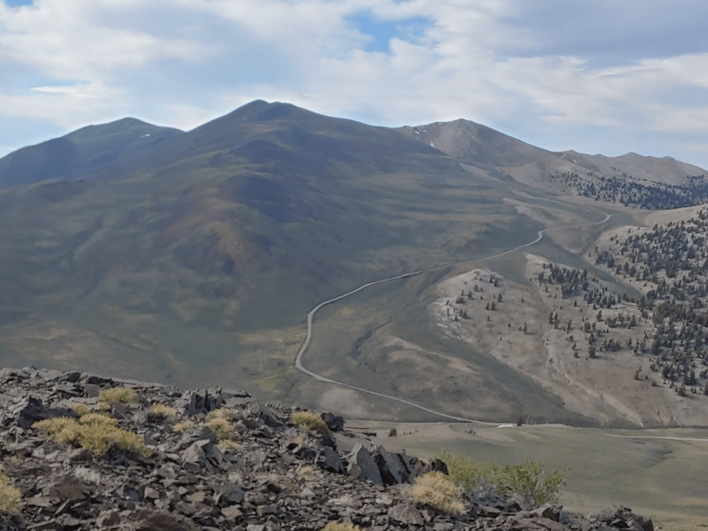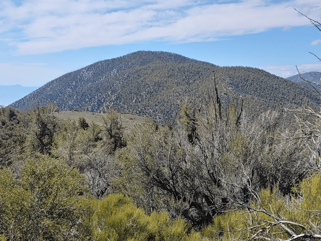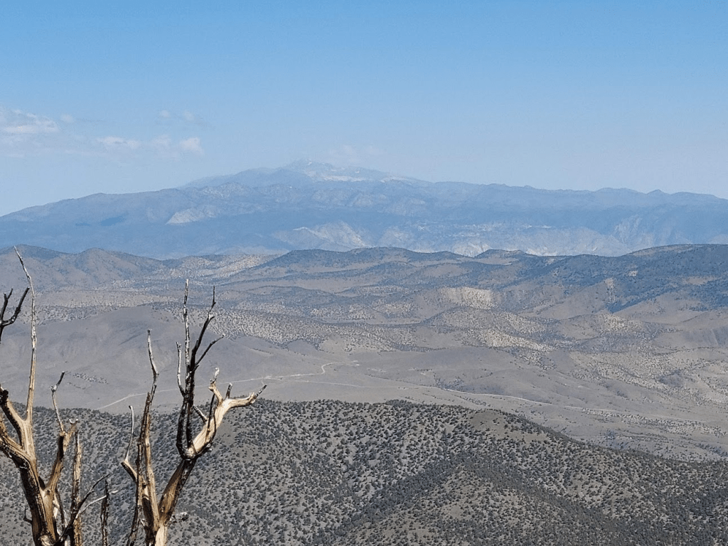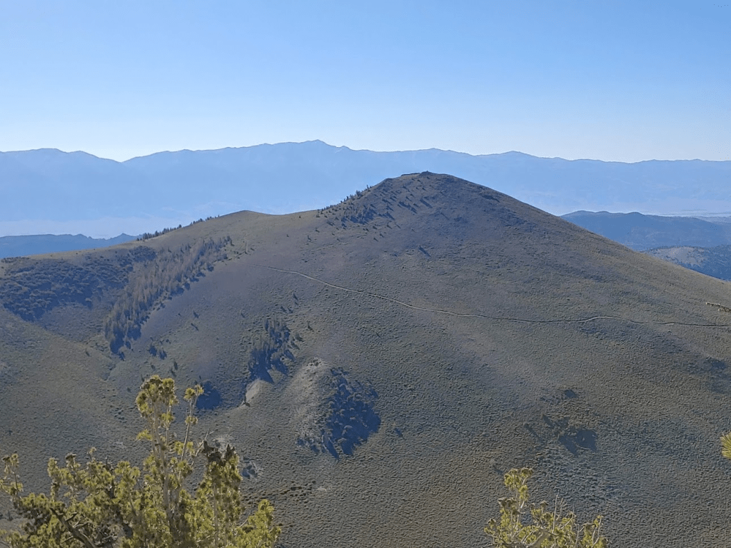 Kelty’s summit was covered in trees so the views weren’t great. I did get a great shot of Boundary Peak (left) and Montgomery Peak (right) at the northern end of the White Mountains. The California/Nevada state line crosses right between the 2 peaks. So, even though Montgomery is 300 feet higher, Boundary is the highest point in the state of Nevada at 13,146 feet. I climbed Boundary back in August 2018.