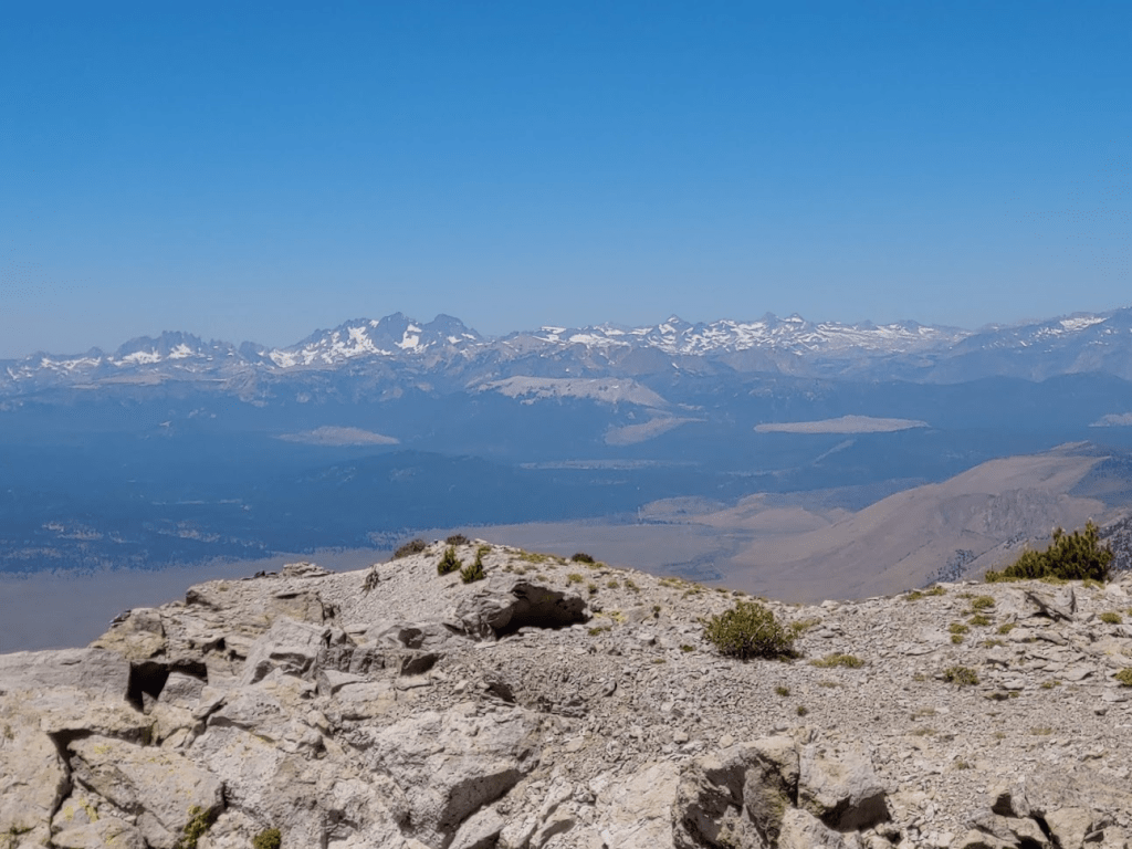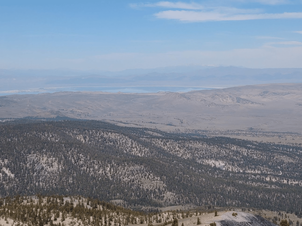 The views were very similar to the higher south summit. The one advantage of the north summit is a decent view of Mono Lake far to the north. Mount Patterson could be seen beyond it (too hazy to show up in the picture).